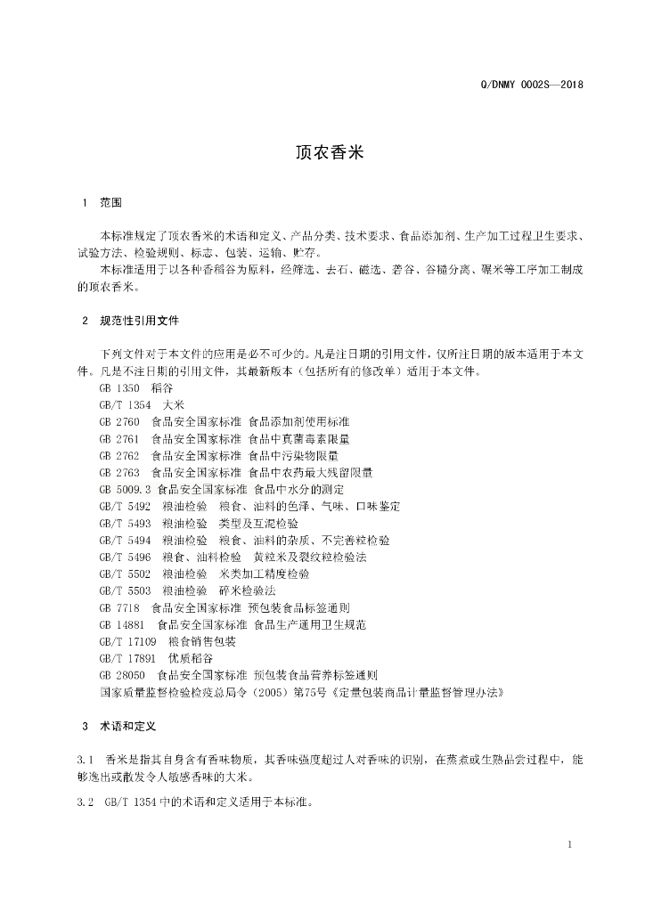 Q/DNMY 0002S-2018 顶农香米