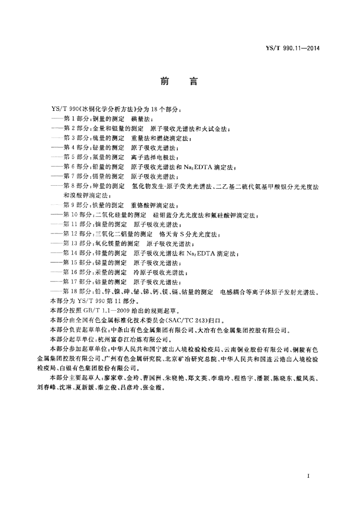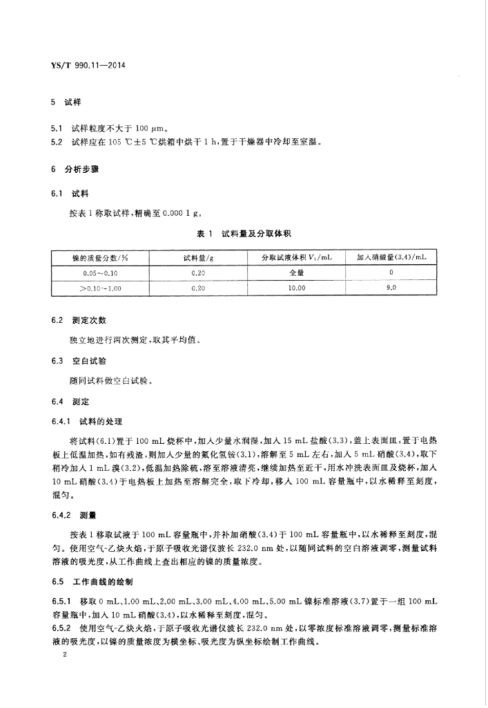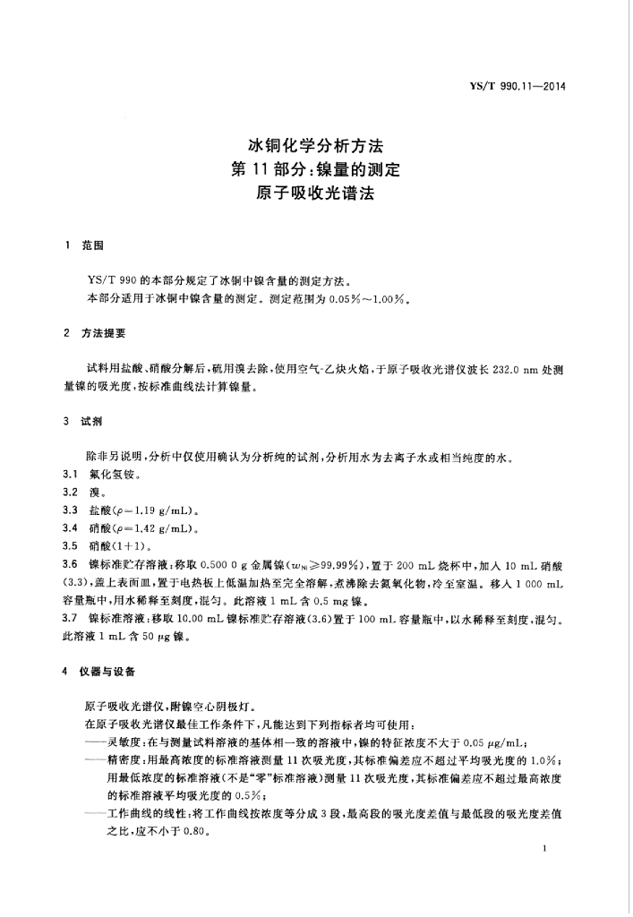 YS/T 990.11-2014 冰铜化学分析方法 第11部分:镍量的测定原子吸收光谱法