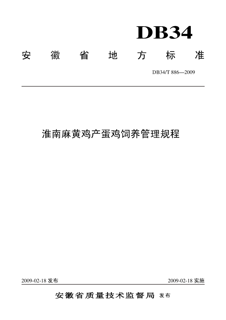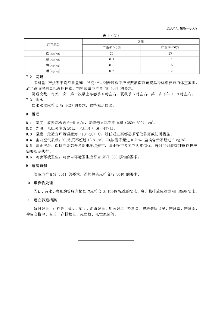 DB34/T 886-2009 淮南麻黄鸡产蛋鸡饲养管理规程