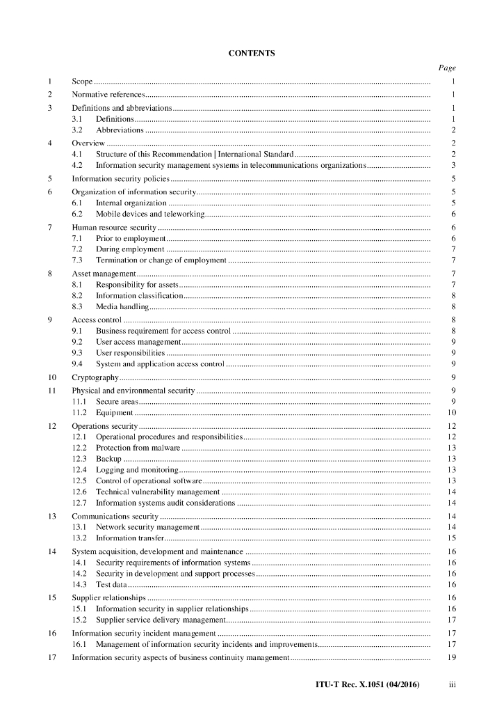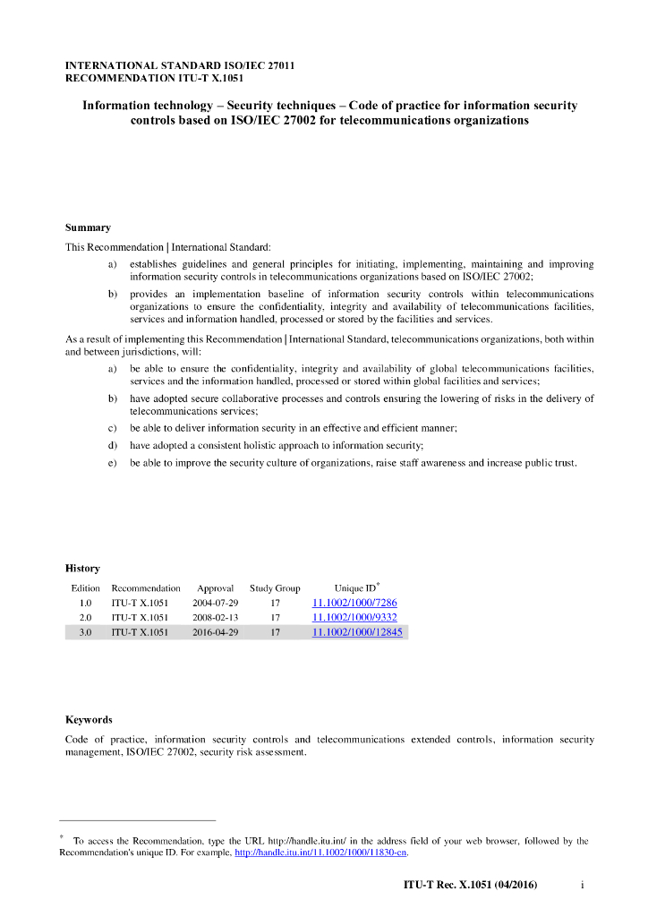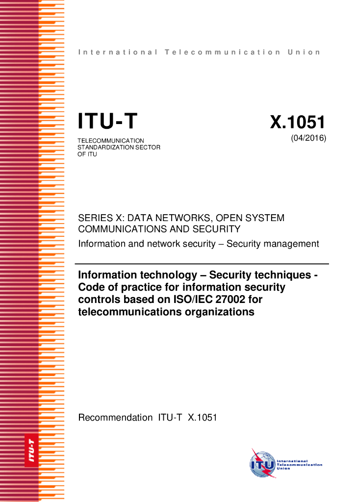ITU-T X.1051-2016 信息技术 安全技术 电信组织的基于ISO/IEC 27002信息安全控制的实施规程