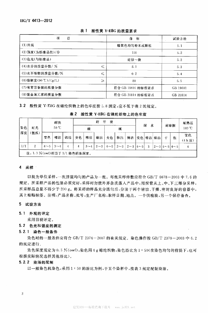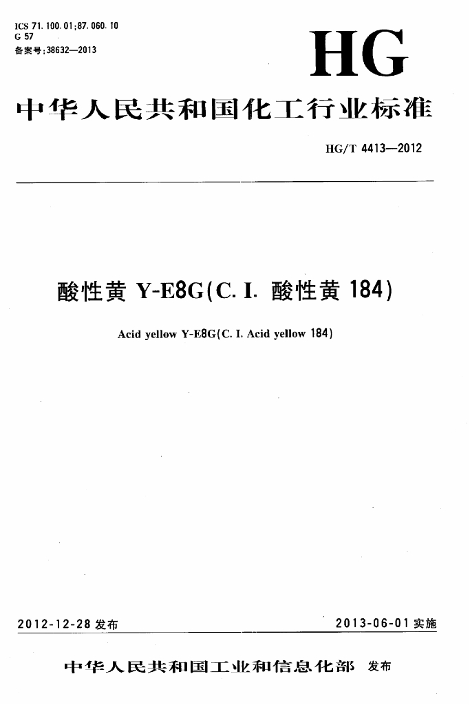 HG/T 4413-2012 酸性黄 Y-E8G(C. I. 酸性黄 184)