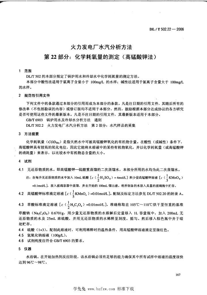 DL/T 502.22-2006 火力发电厂水汽分析方法 第22部分:化学耗氧量的测定(高锰酸钾法)