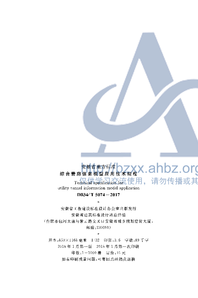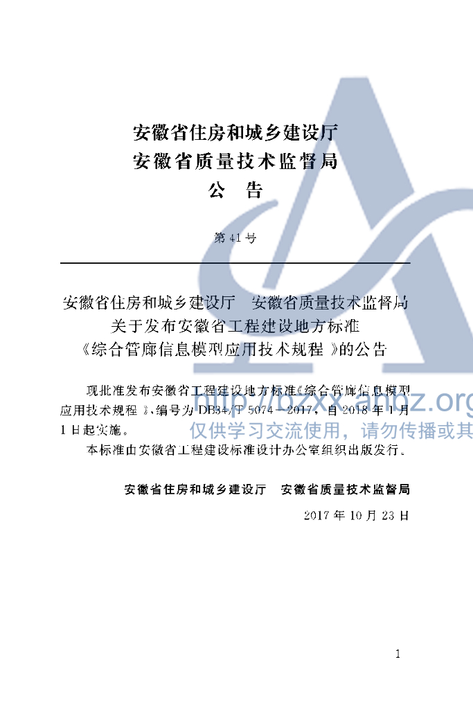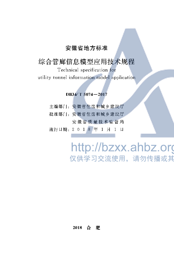 DB34/T 5074-2017 综合管廊信息模型应用技术规程