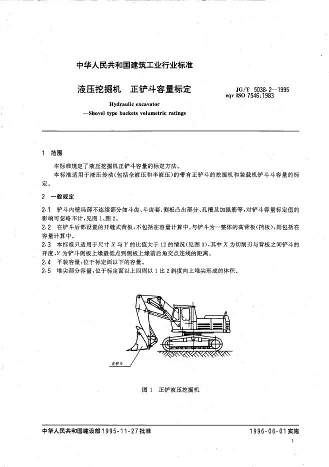 JG/T 5038.2-1995 液压挖掘机正铲斗容量标定