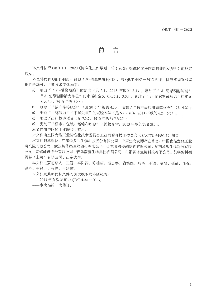 广东溢多利生物科技股份有限公司、中国生物发酵产业协会、中国食品发酵工业研究院有限公司、武汉新华扬生物股份有限公司、山东隆科特酶制剂有限公司、湖南鸿鹰生物科技有限公司、安琪酵母股份有限公司、青岛蔚蓝生物集团有限公司、白银赛诺生物科技有限公司、英联酶制剂贸易(上海)有限公司、山东大学