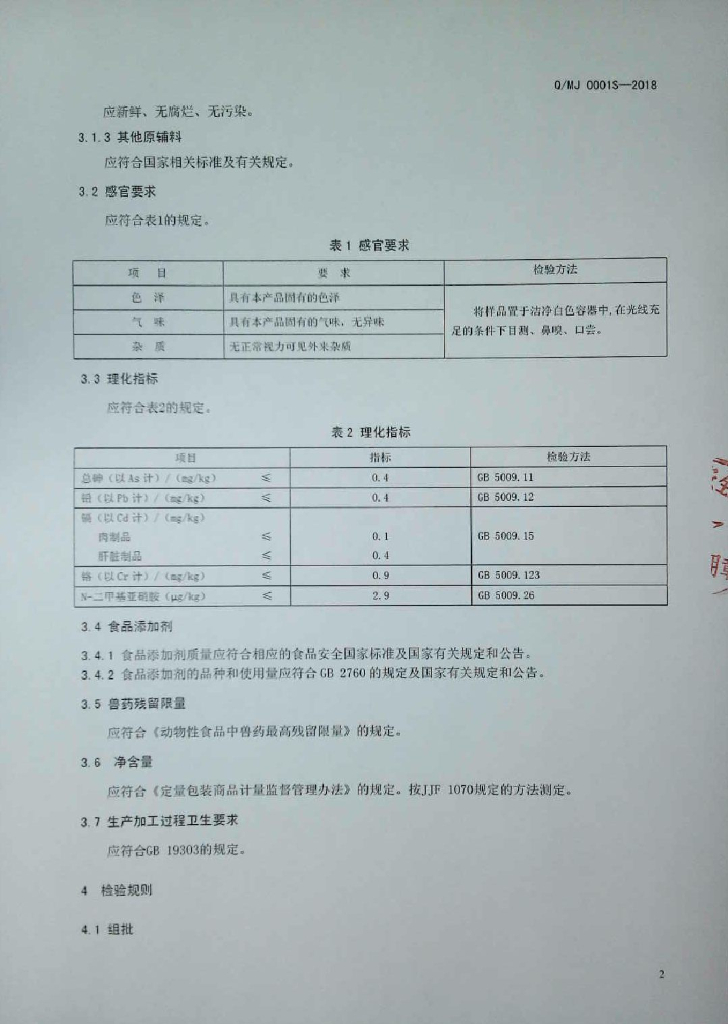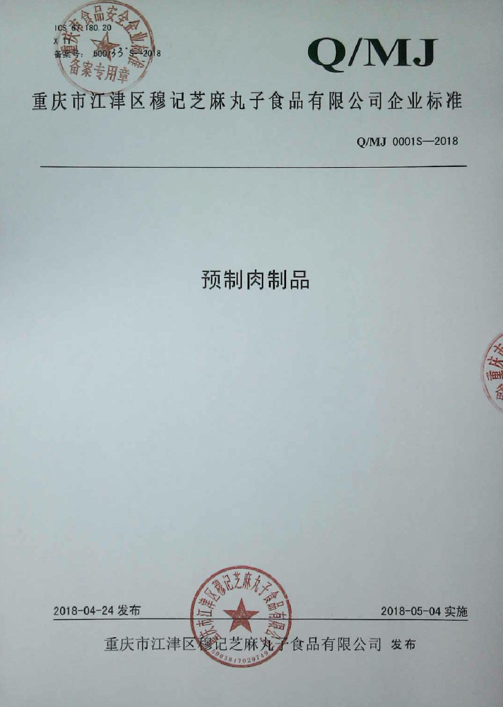 Q/MJ 0001S-2018 预制肉制品