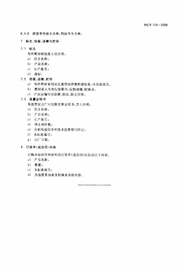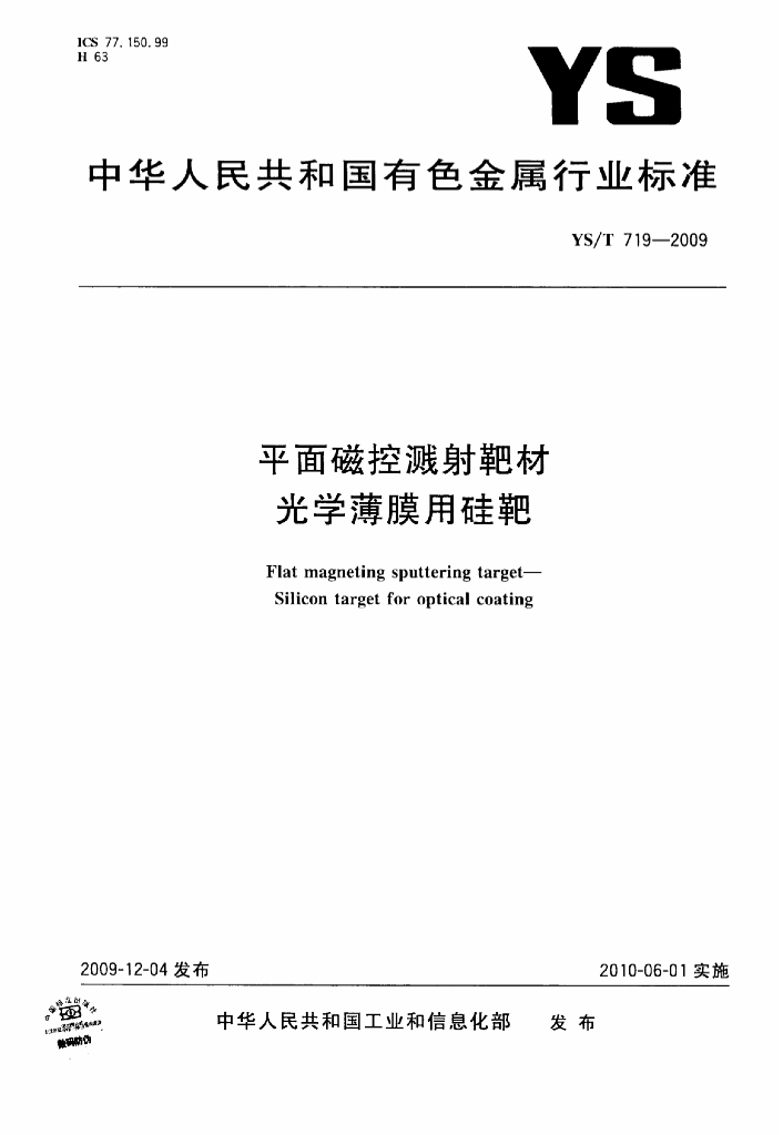 YS/T 719-2009 平面磁控溅射靶材光学薄膜用硅靶
