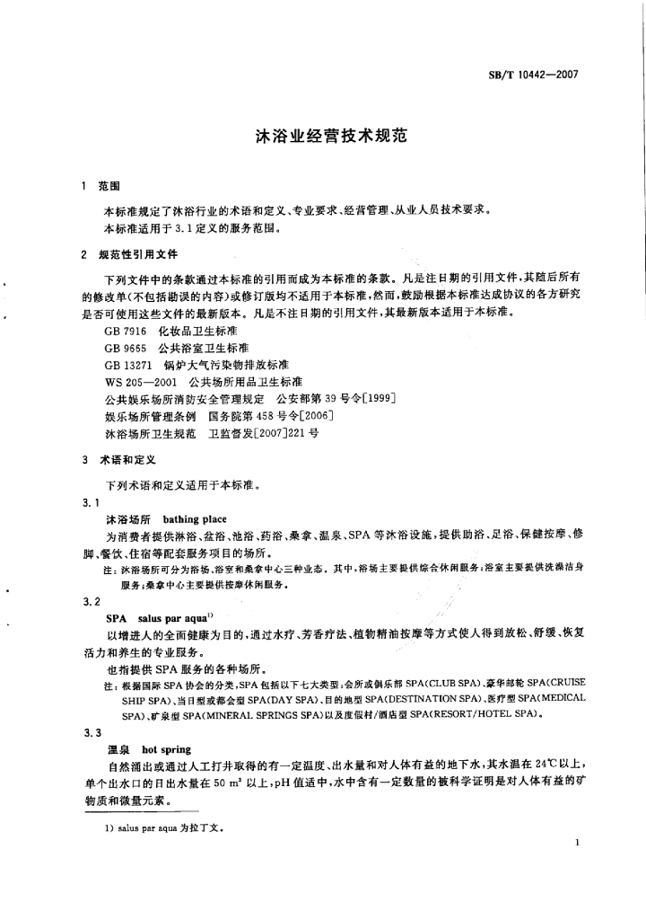 SB/T 10442-2007 沐浴业经营技术规范