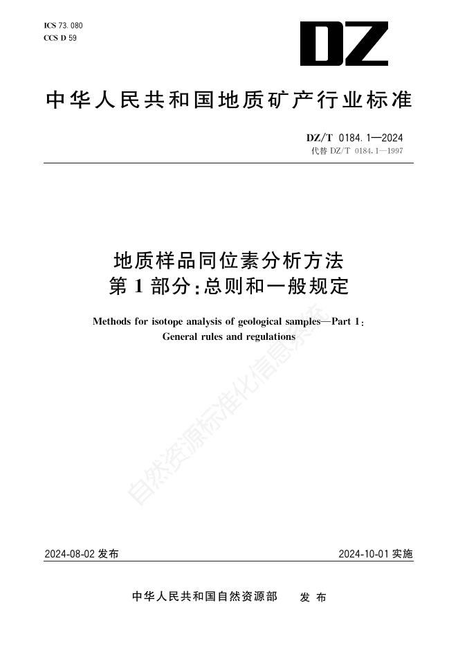 DZ/T 0184.1-2024 地质样品同位素分析方法 第1部分:总则和一般规定