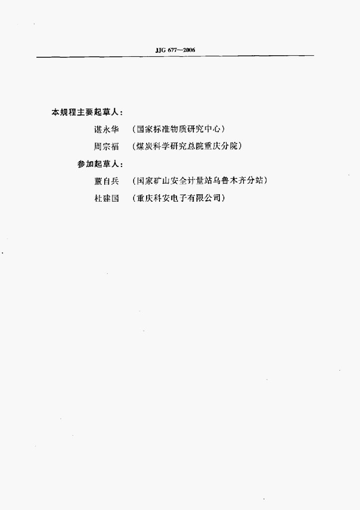 谌永华(国家标准物质研究中心)、周宗福(煤炭科学研究总院重庆分院)、董自兵(国家矿山安全计量站乌鲁木齐分站)、杜建国(重庆科安电子有限公司)