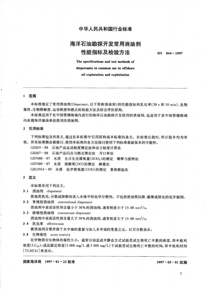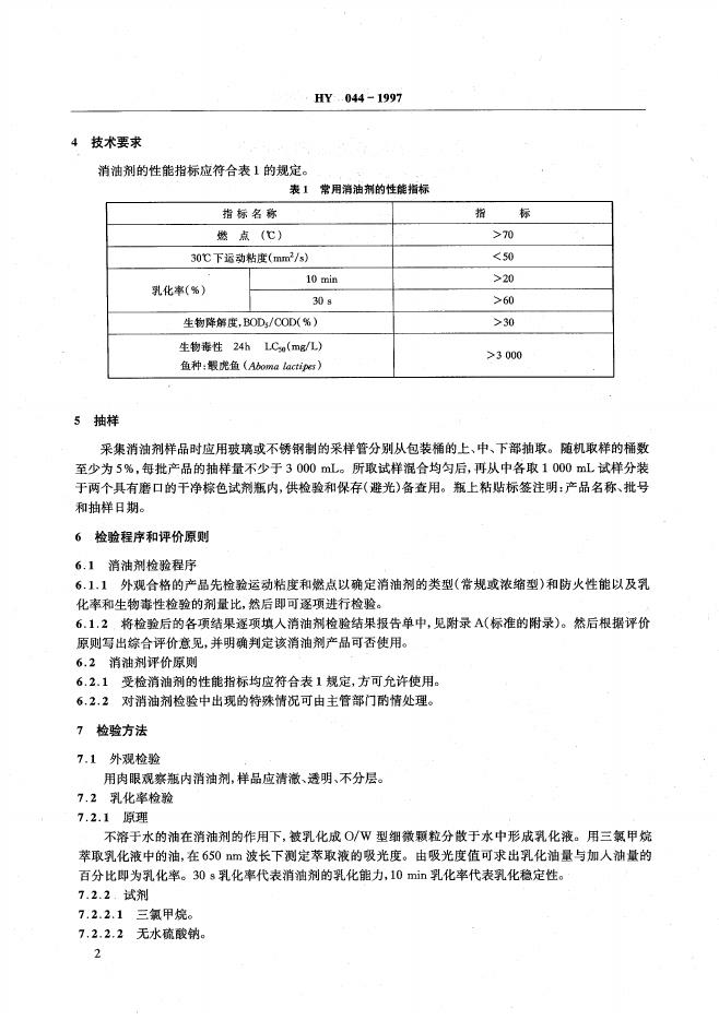 HY/T 044-1997 海洋石油勘探开发常用消油剂性能指标及检验方法