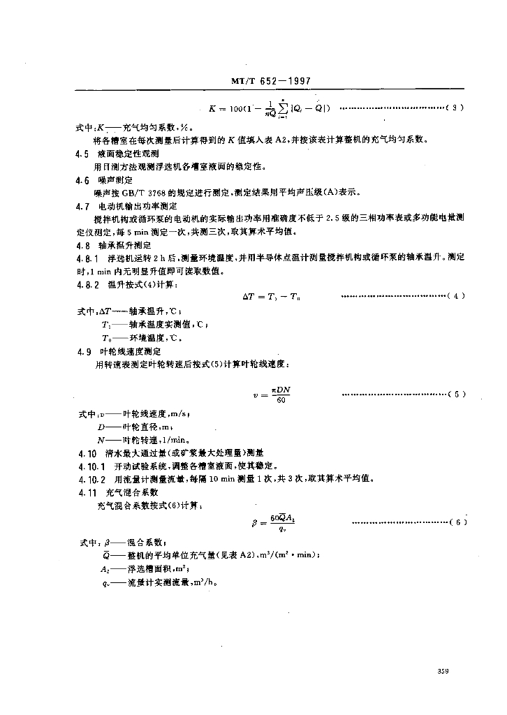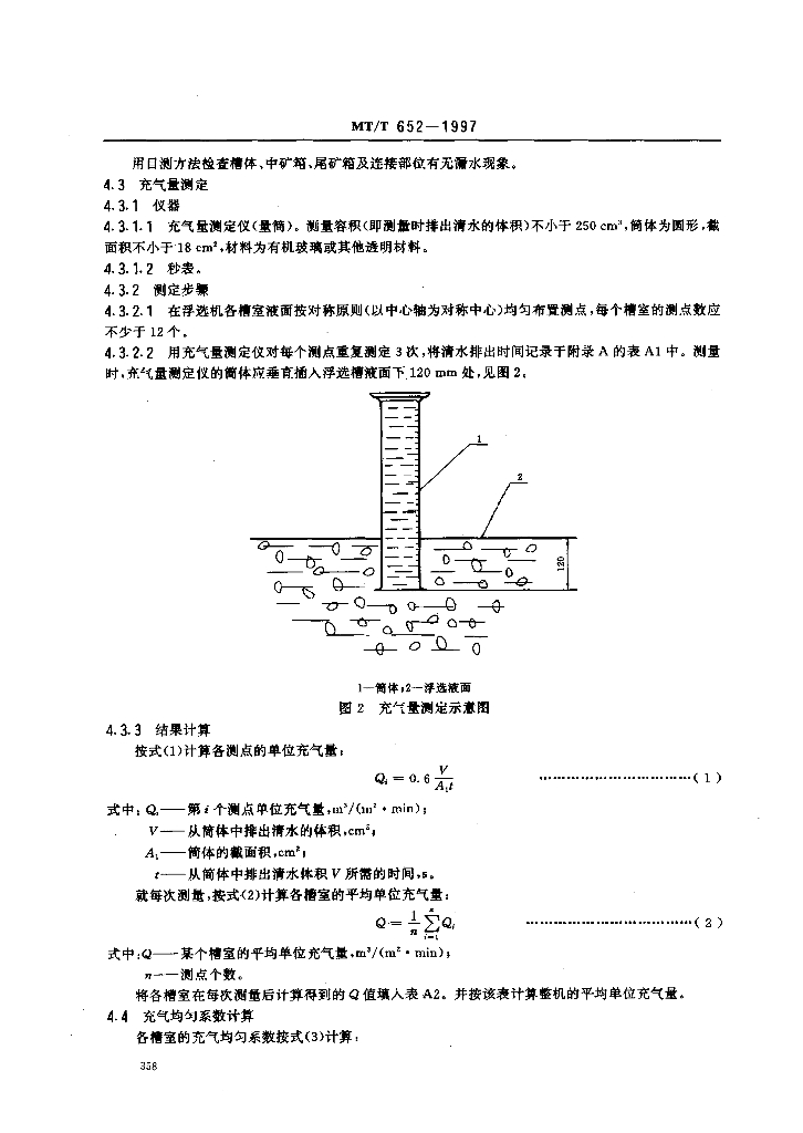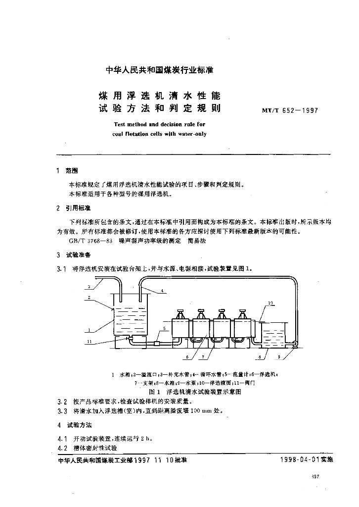 MT/T 652-1997 煤用浮选机清水性能、试验方法和判定规则