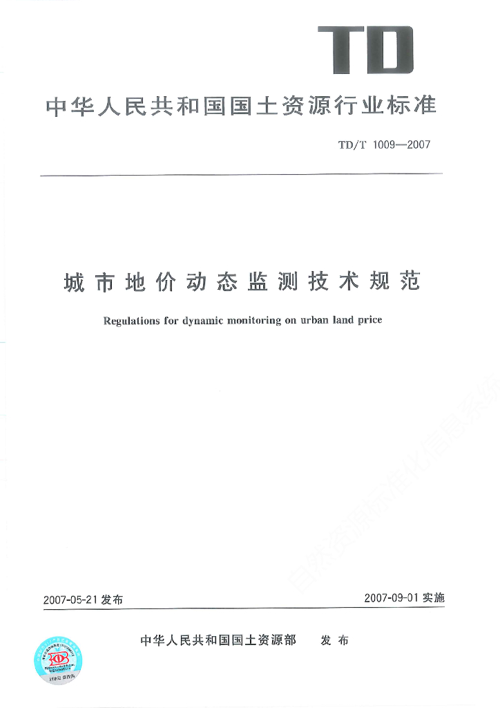 TD/T 1009-2007 城市地价动态监测技术规范