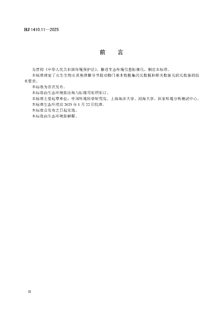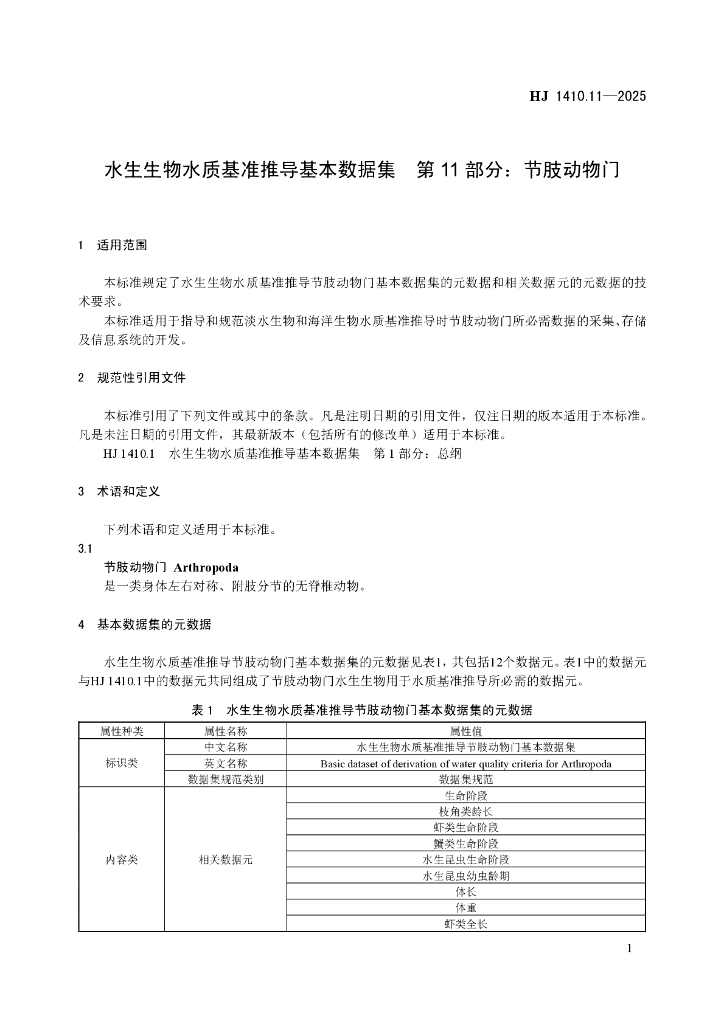 HJ 1410.11-2025 水生生物水质基准推导基本数据集 第11部分:节肢动物门