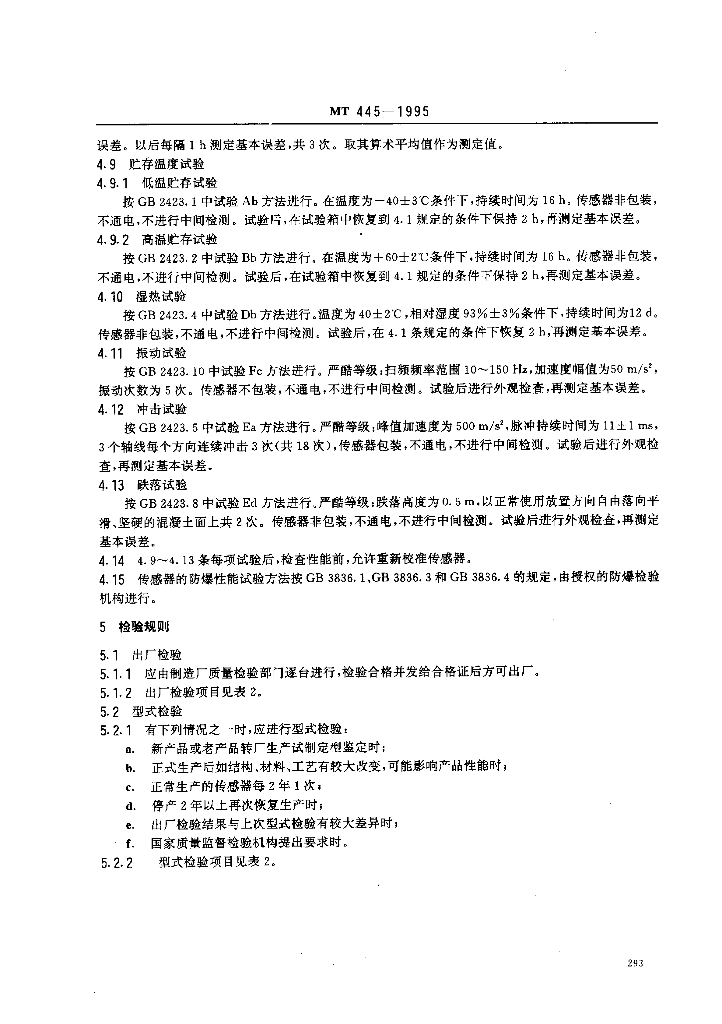 MT 445-1995 煤矿用高浓度热导式甲烷传感器技术条件