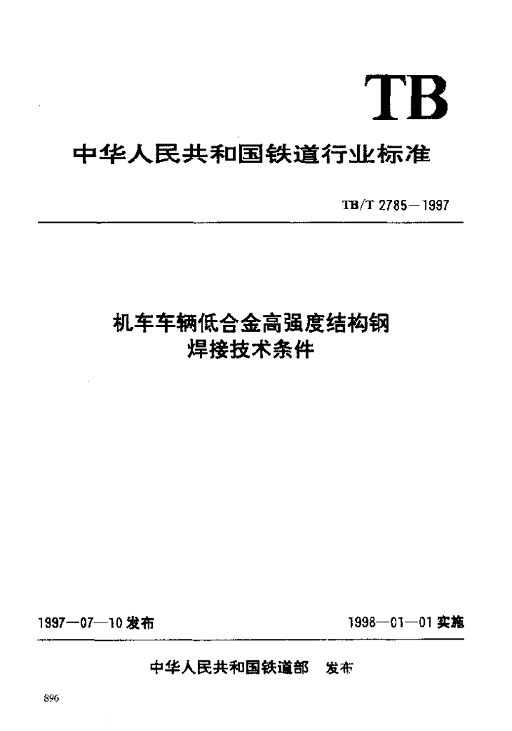 TB/T 2785-1997 机车车辆低合金高强度结构钢焊接技术条件