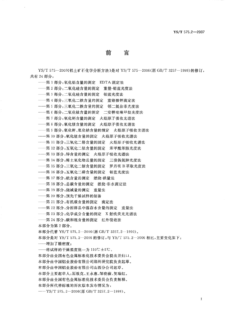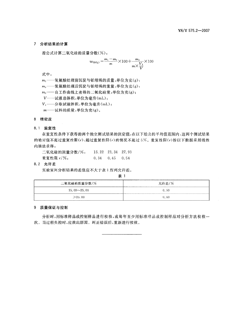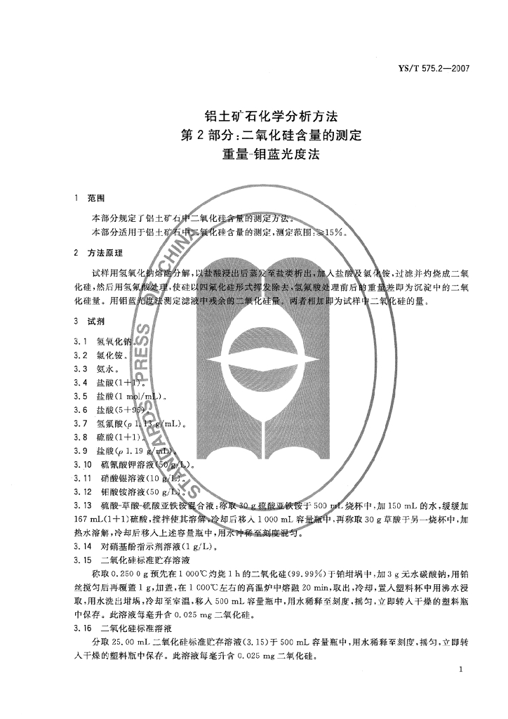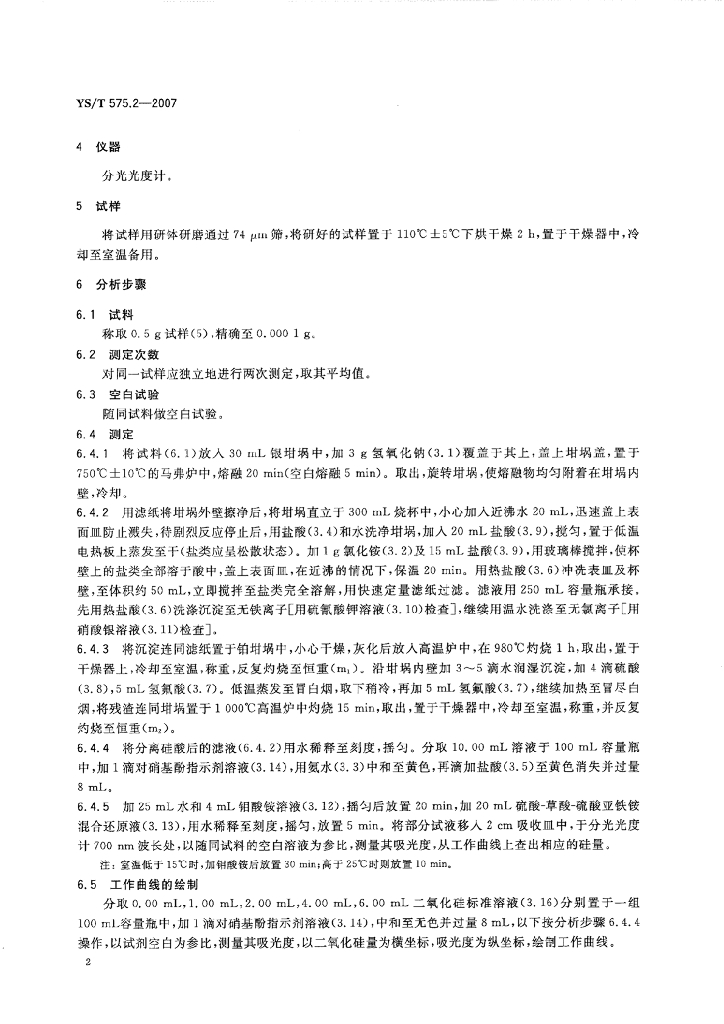 YS/T 575.2-2007 铝土矿石化学分析方法 第2部分:二氧化硅含量的测定 重量-钼蓝光度法