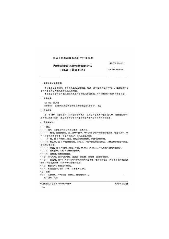 SH/T 0199-1992 内燃机油氧化腐蚀模拟测定法CLW-1轴瓦机法