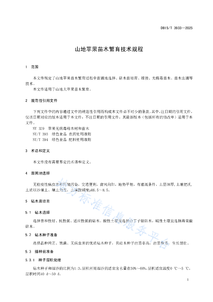 DB15/T 3933-2025 山地苹果苗木繁育技术规程