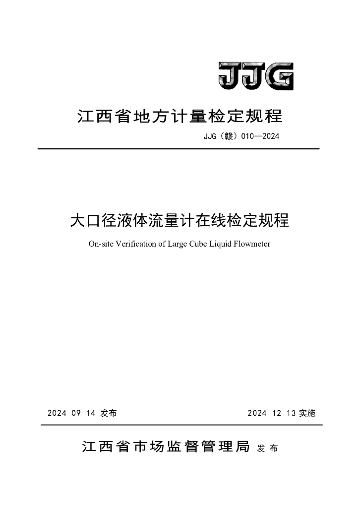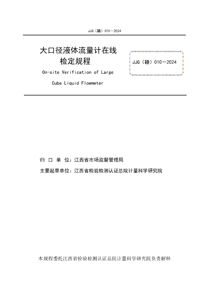 JJG(赣)010-2024 大口径液体流量计在线检定规程