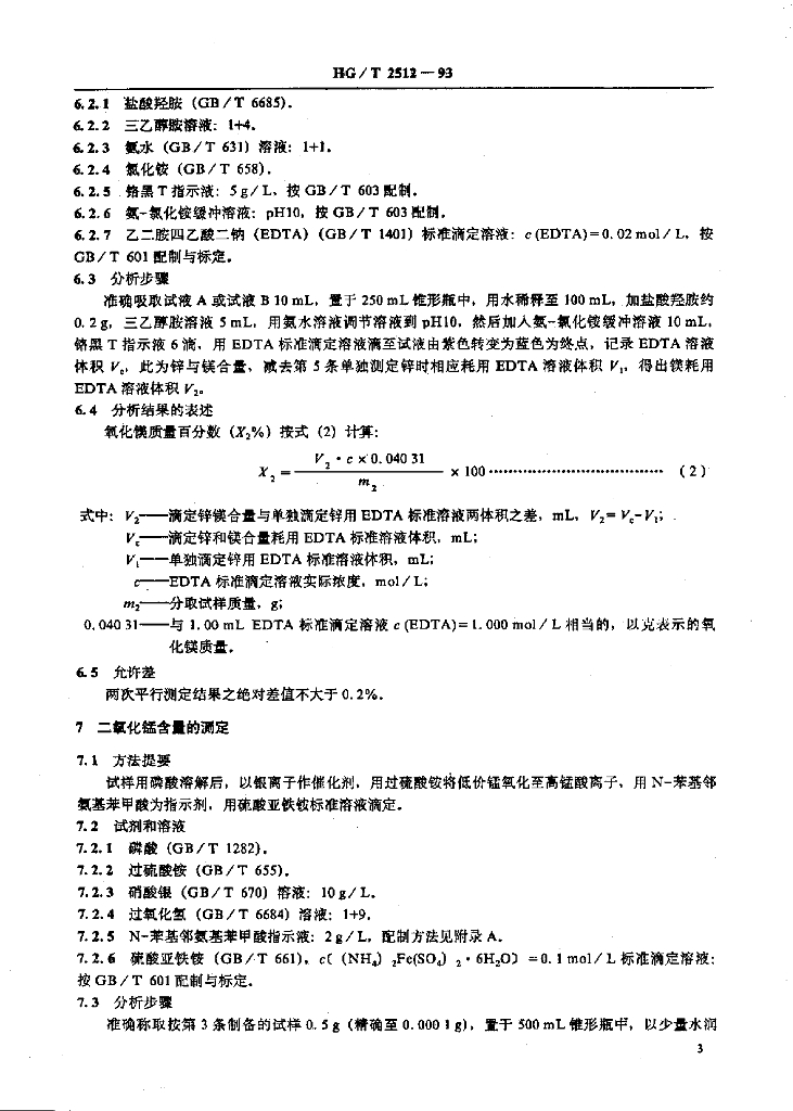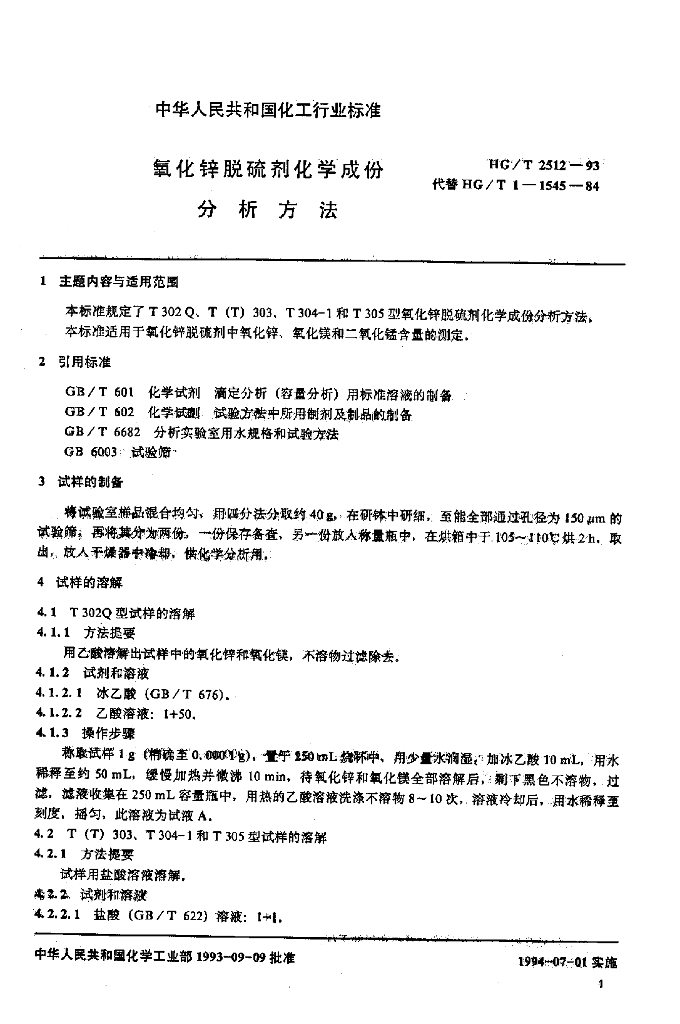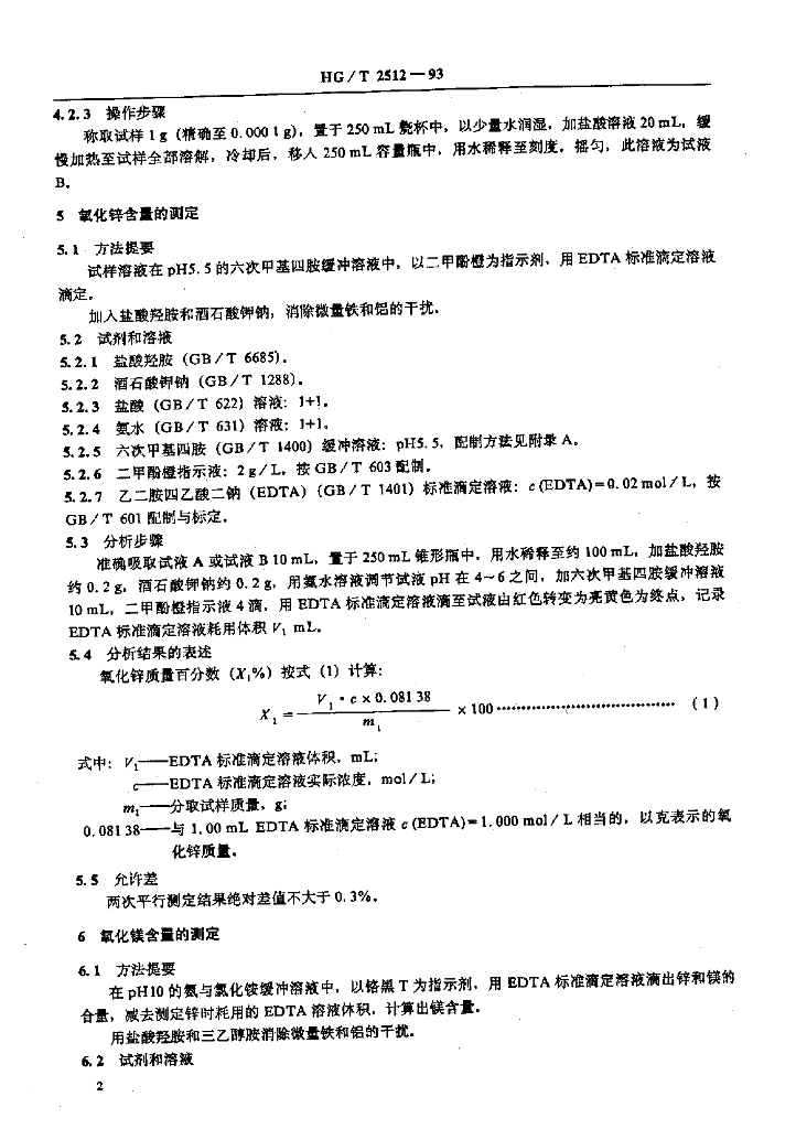 HG/T 2512-1993 氧化锌脱硫剂化学成份分析方法
