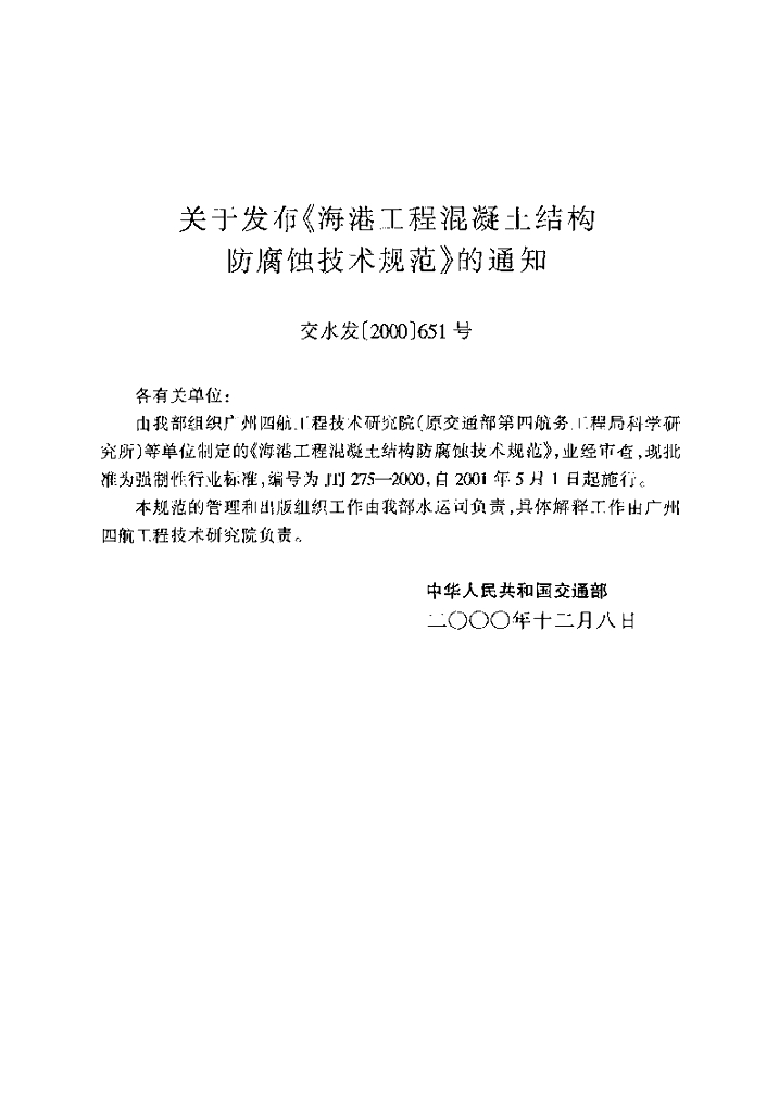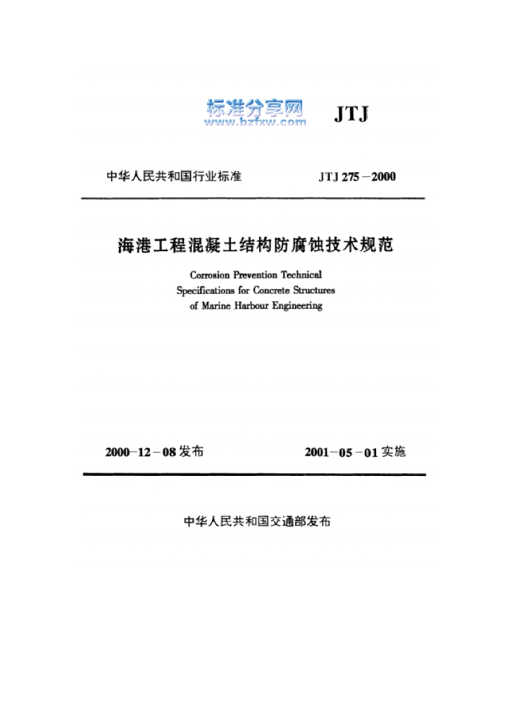 JTJ 275-2000 海港工程混凝土结构防腐蚀技术规范