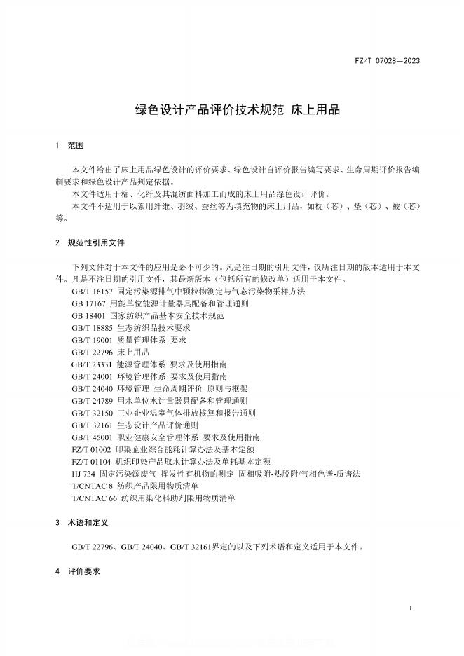 FZ/T 07028-2023 绿色设计产品评价技术规范 床上用品