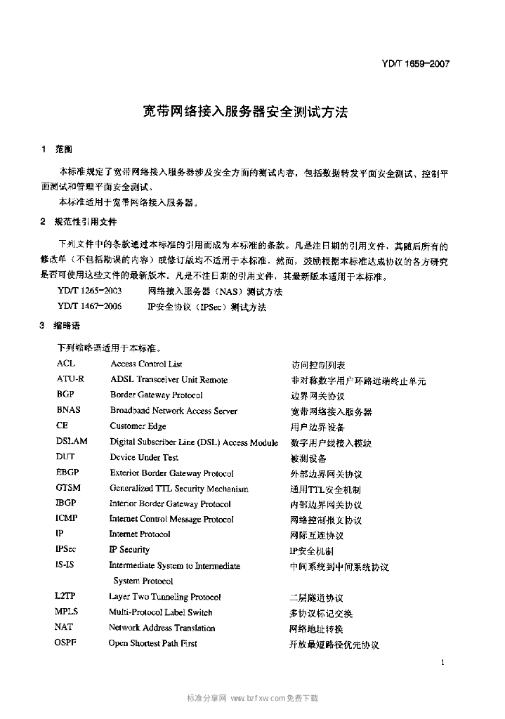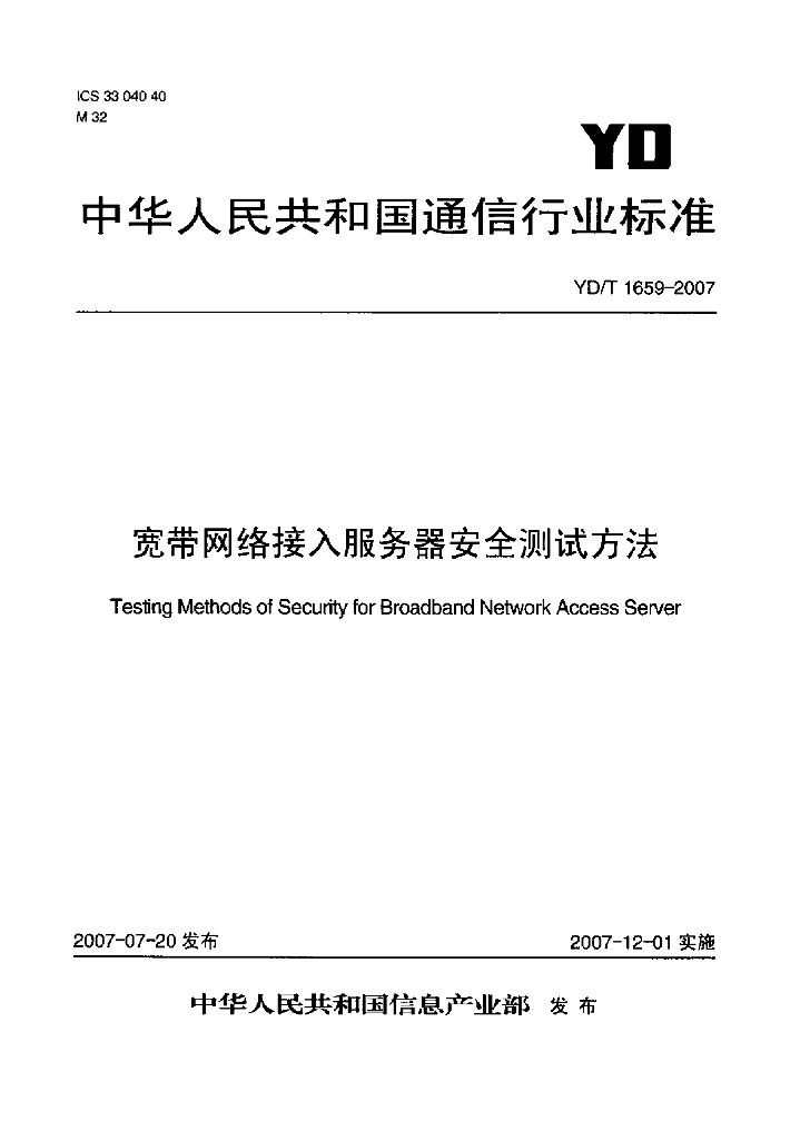 YD/T 1659-2007 宽带网络接入服务器安全测试方法