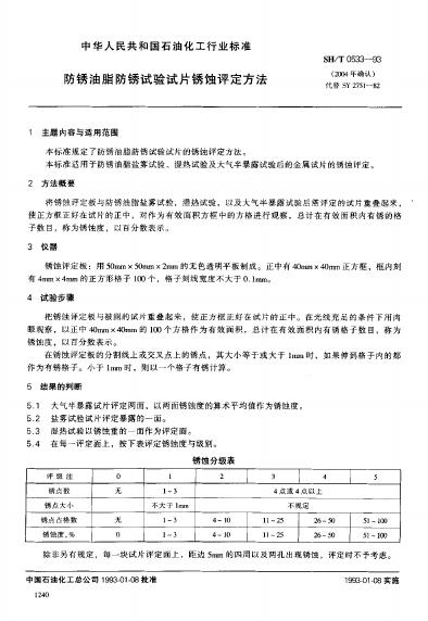 SH/T 0533-1992 防锈油脂防锈试验片锈蚀评定方法