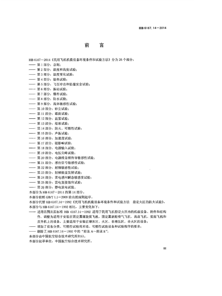 HB 6167.14-2014 民用飞机机载设备环境条件和试验方法 第14部分:防火、可燃性试验