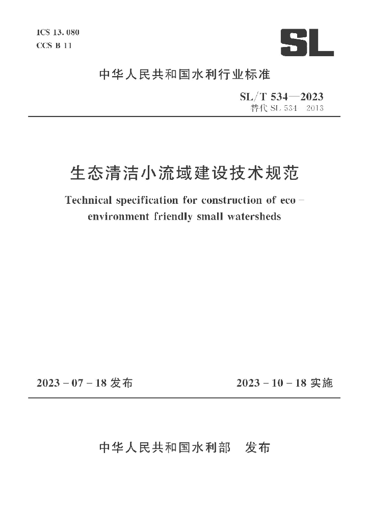 SL/T 534-2023 生态清洁小流域建设技术规范