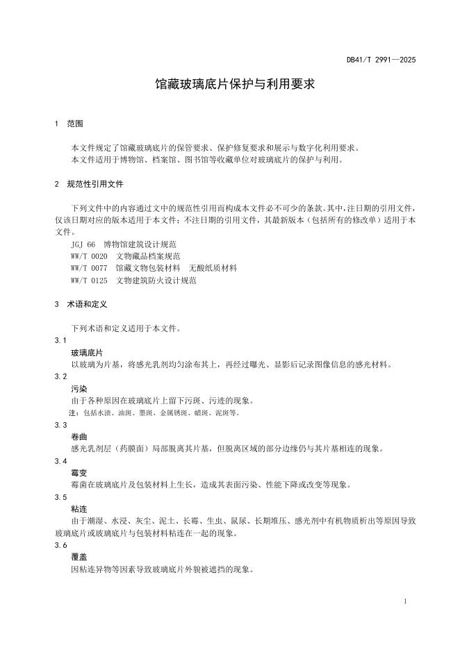 DB41/T 2991-2025 馆藏玻璃底片保护与利用要求