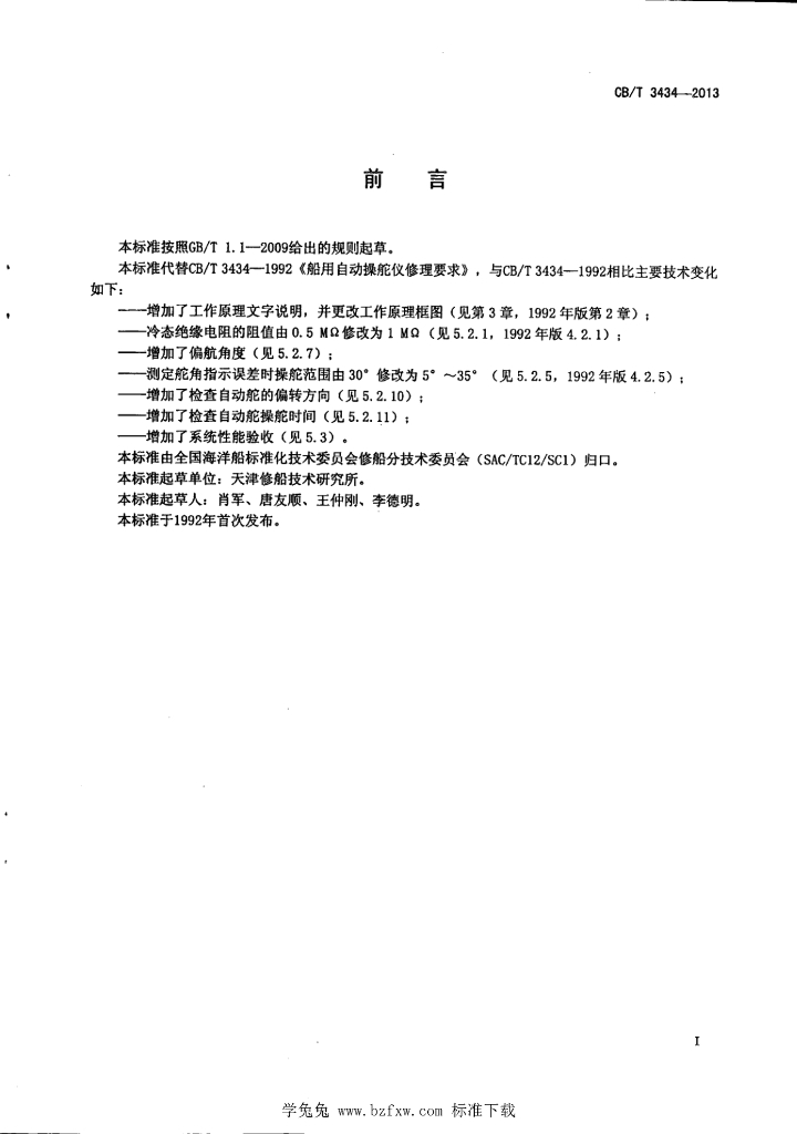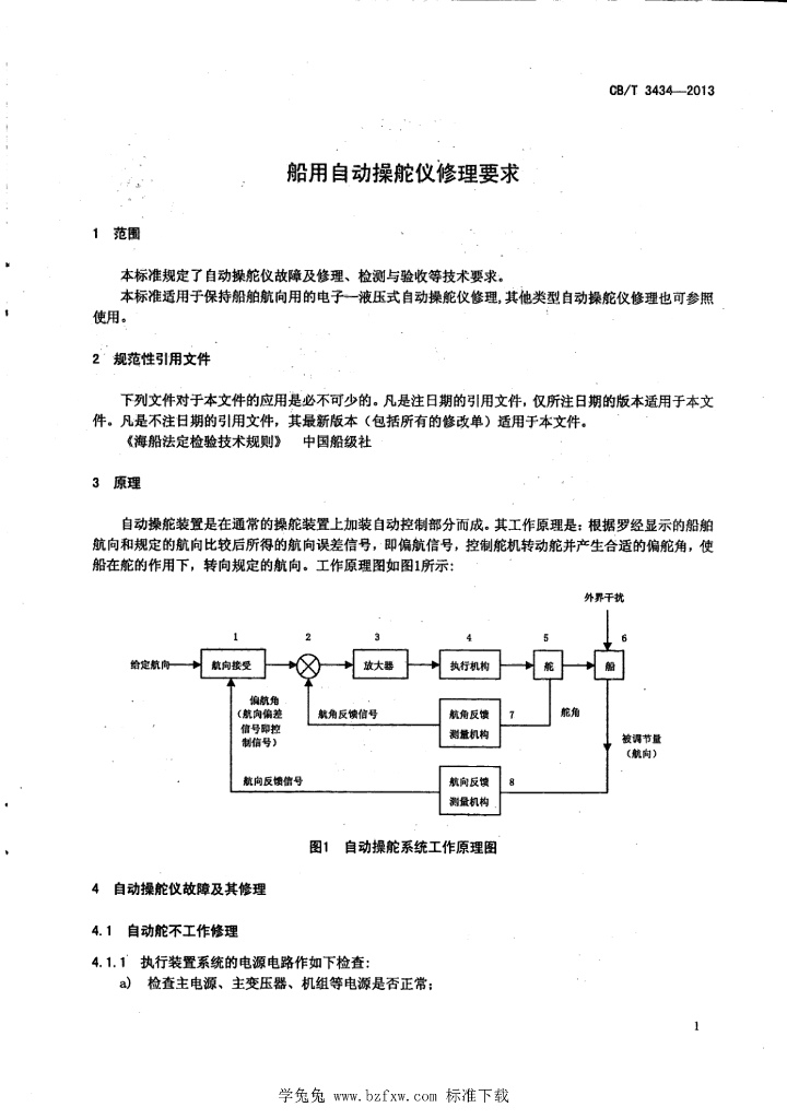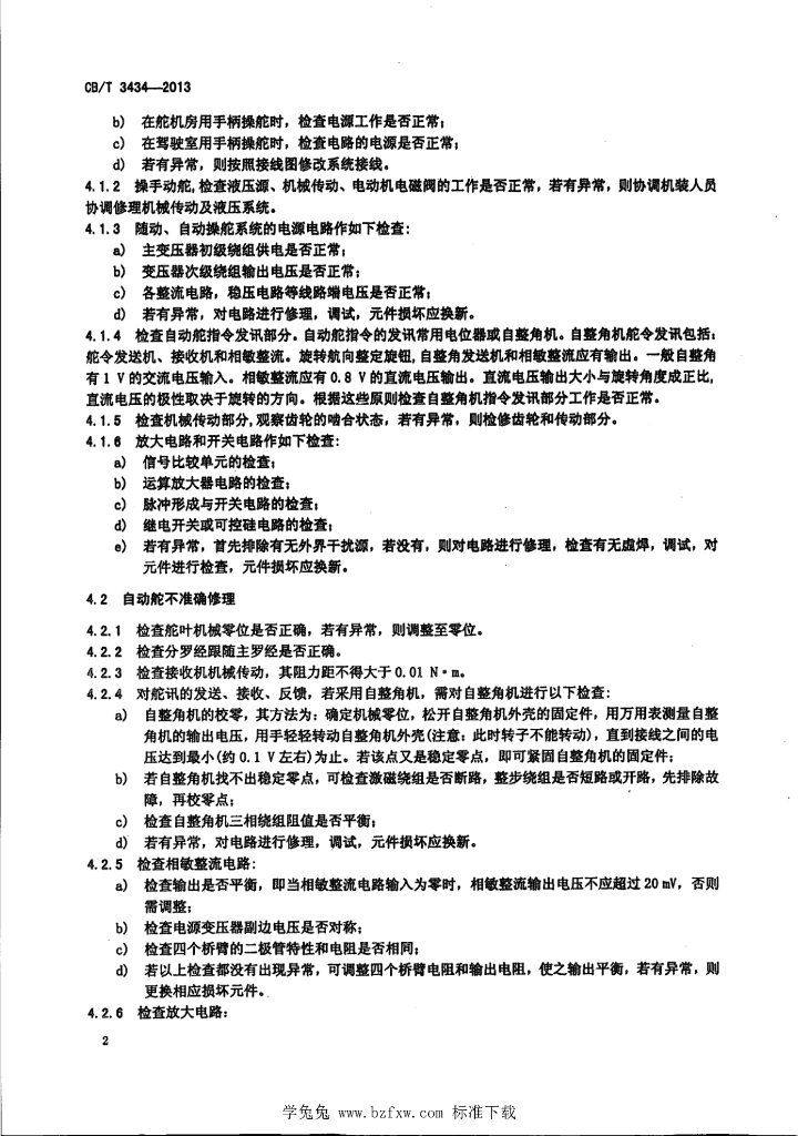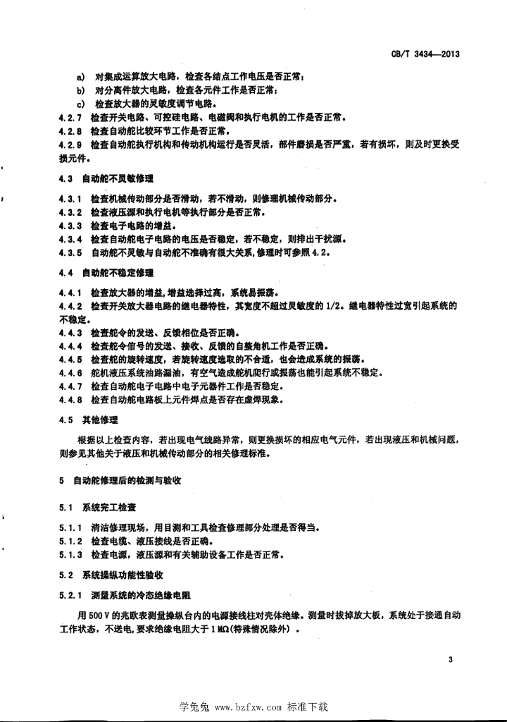 CB/T 3434-2013 船用自动操舵仪修理要求