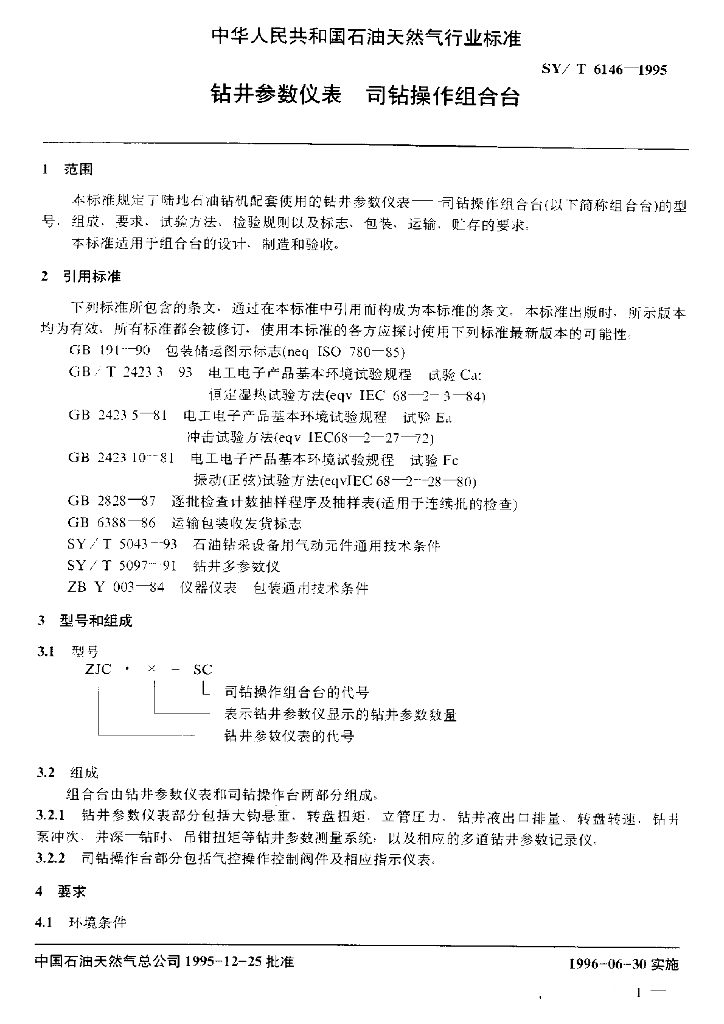 SY/T 6146-1995 钻井参数仪表 司钻操作组合台
