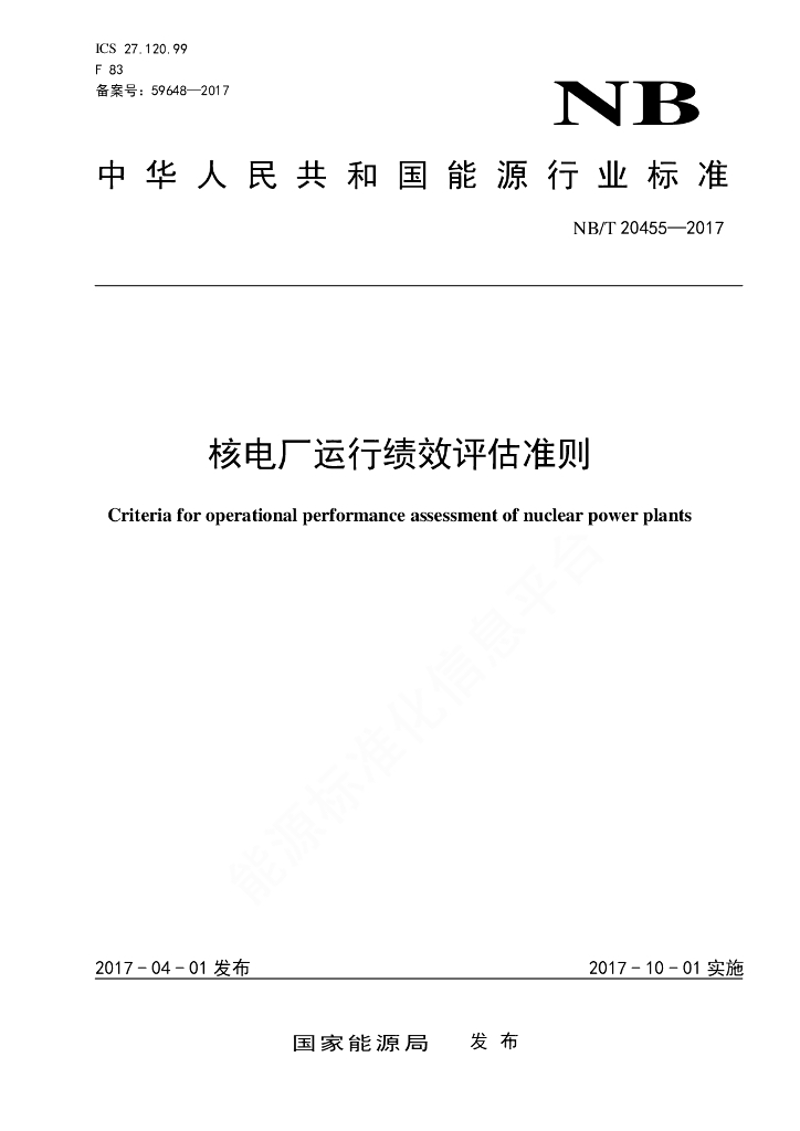 NB/T 20455-2017 核电厂运行绩效评估准则