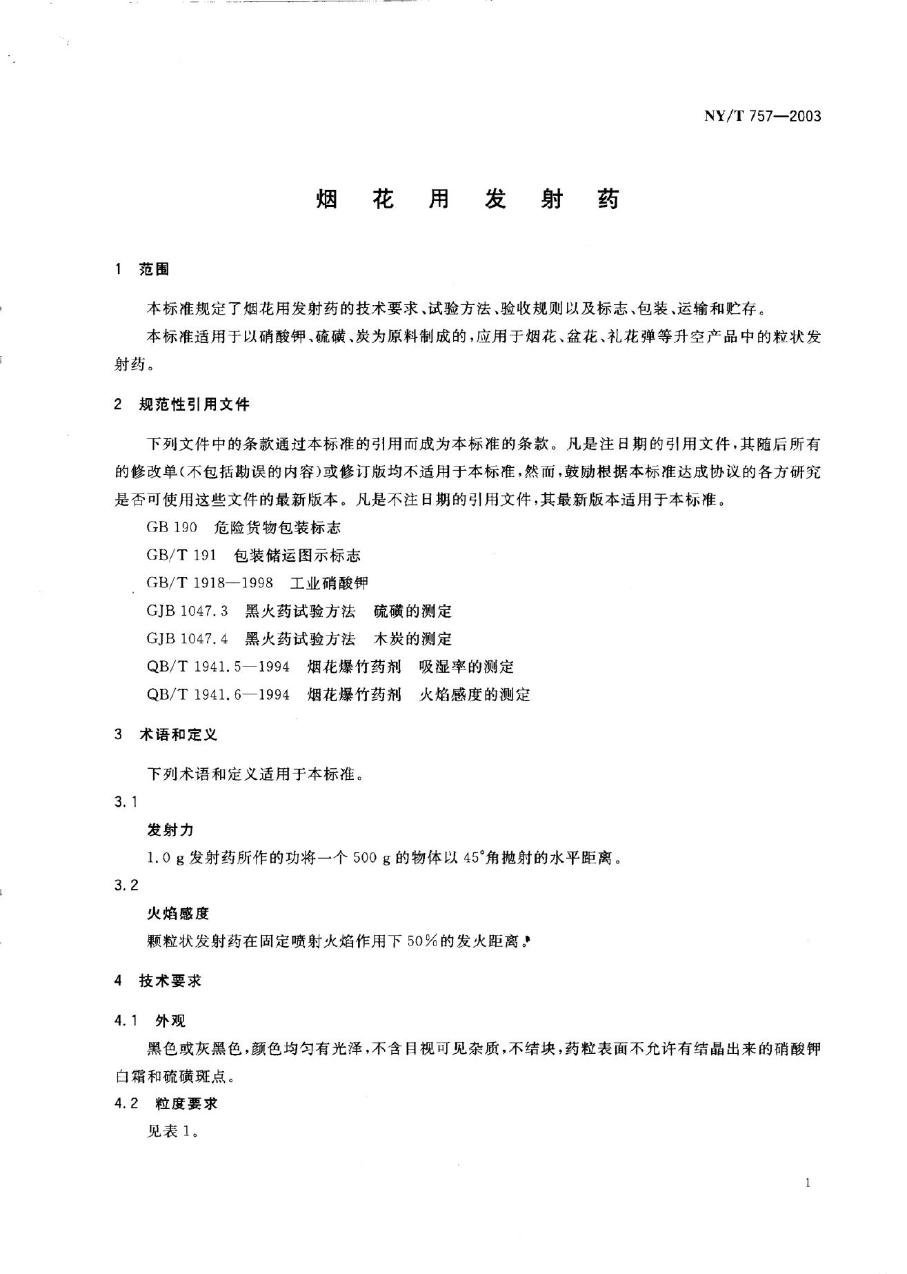 NY/T 757-2003 烟花用发射药