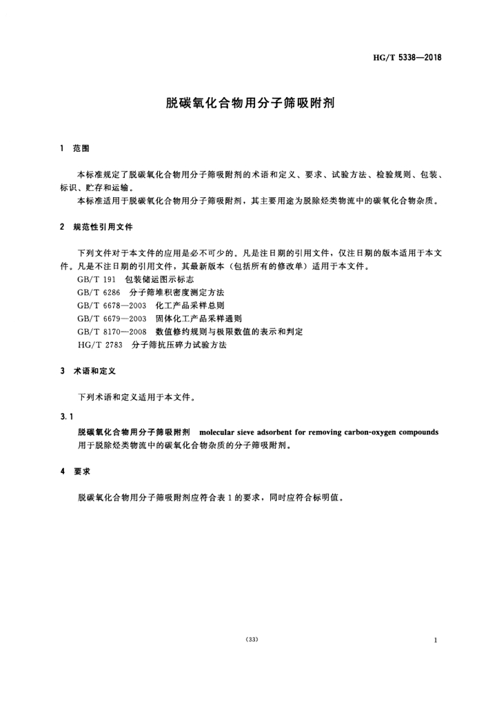 HG/T 5338-2018 脱碳氧化合物用分子筛吸附剂