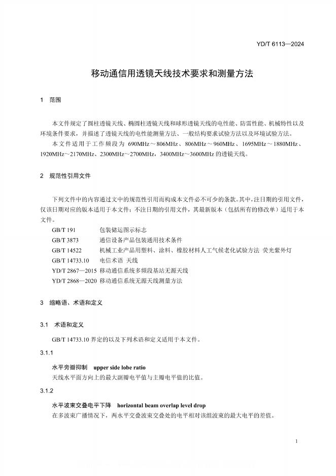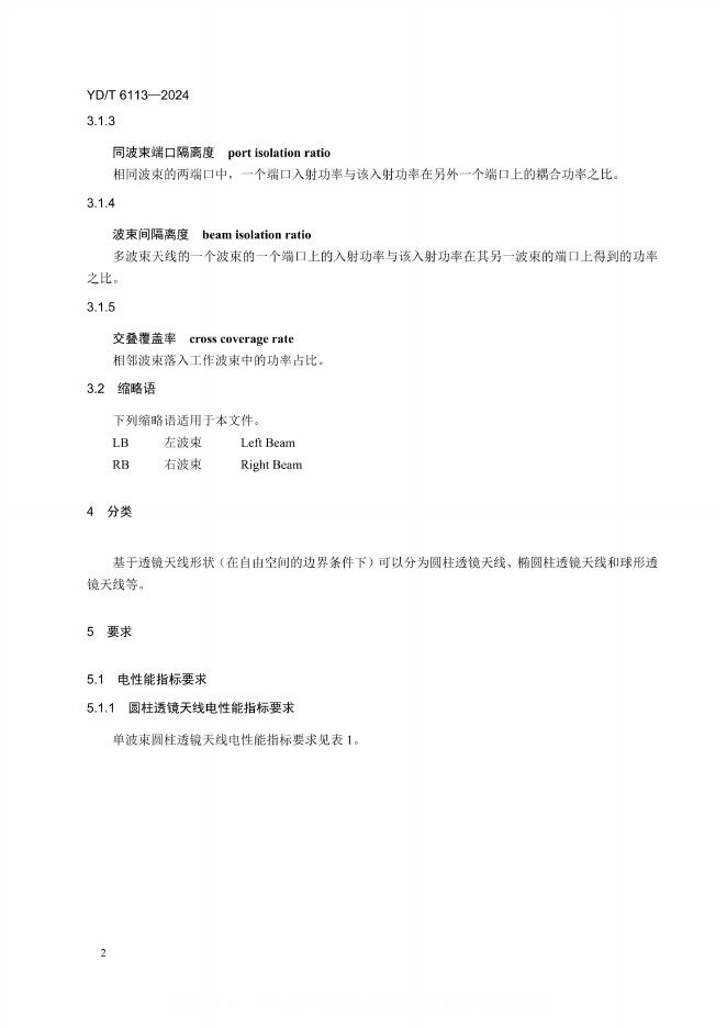 YD/T 6113-2024 移动通信用透镜天线技术要求和测量方法