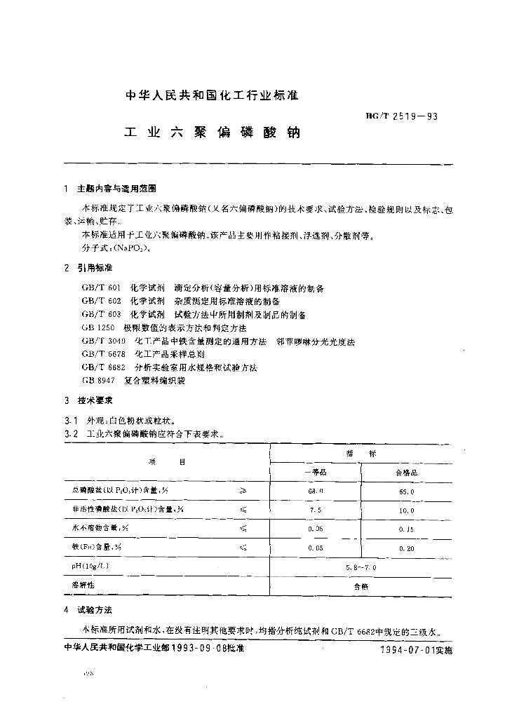 HG/T 2519-1993 工业六聚偏磷酸钠