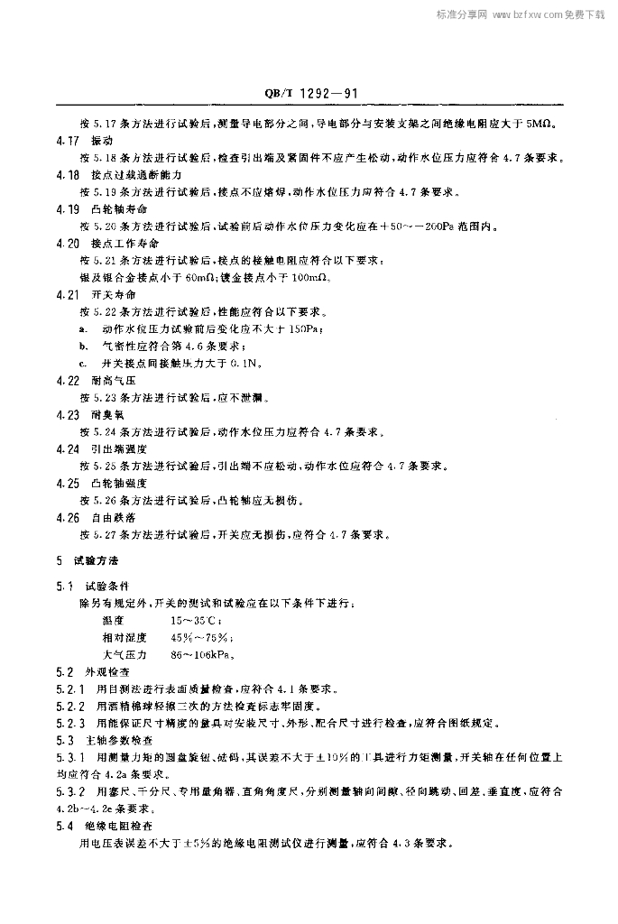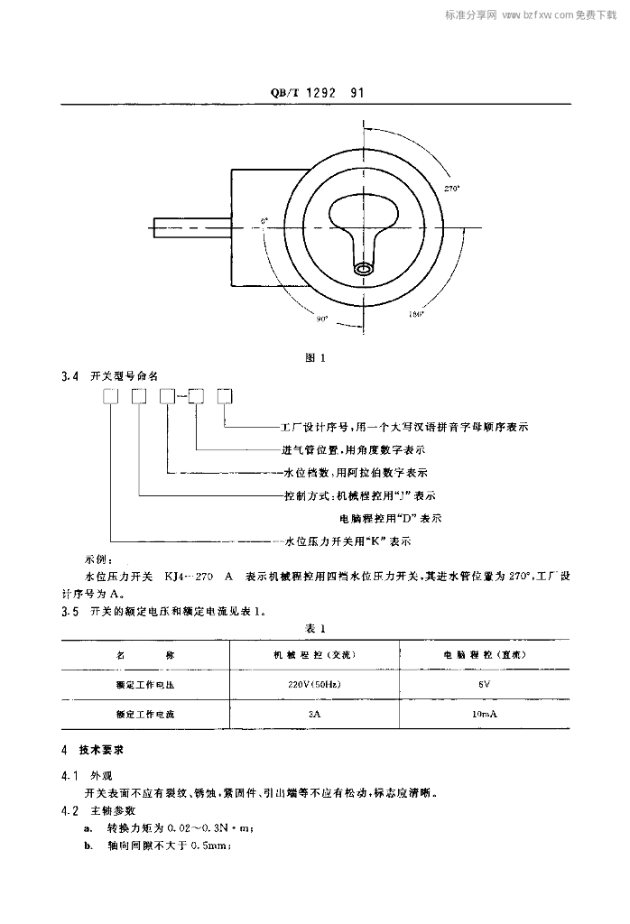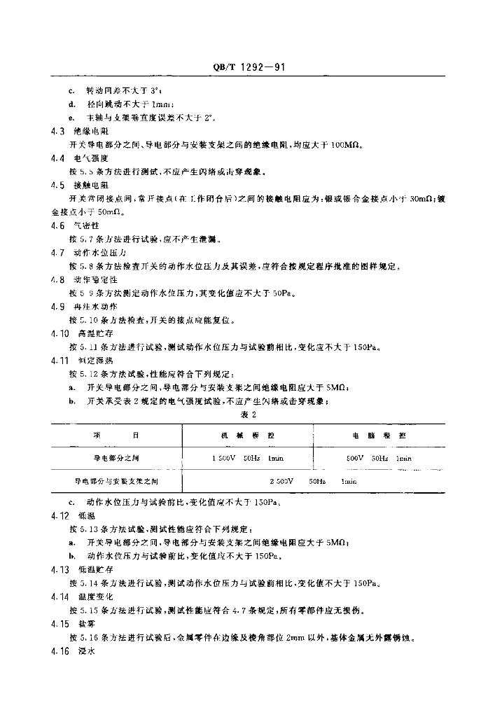 QB/T 1292-1991 自动洗衣机用水位压力开关