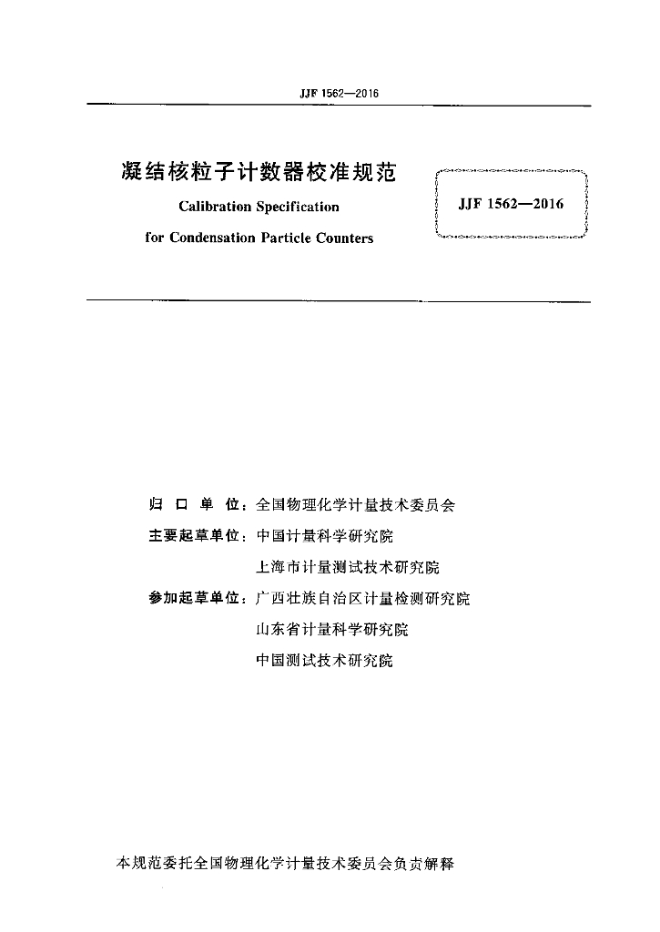 中国计量科学研究院、上海市计量测试技术研究院、广西壮族自治区计量检测研究院、山东省计量科学研究院、中国测试技术研究院