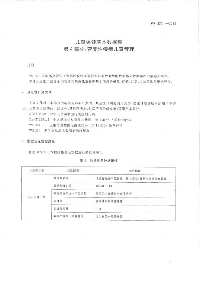WS 376.4-2013 儿童保健基本数据集 第4部分:营养性疾病儿童管理