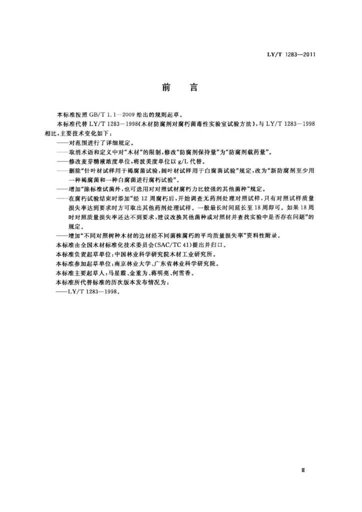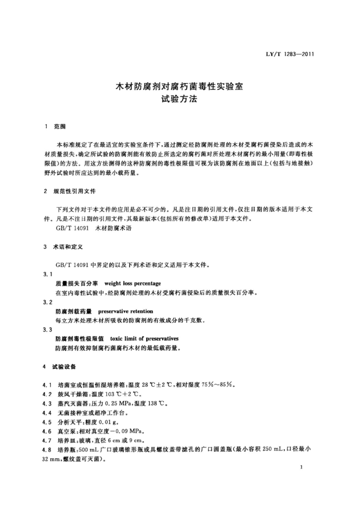 LY/T 1283-2011 木材防腐剂对腐朽菌毒性试验室试验方法