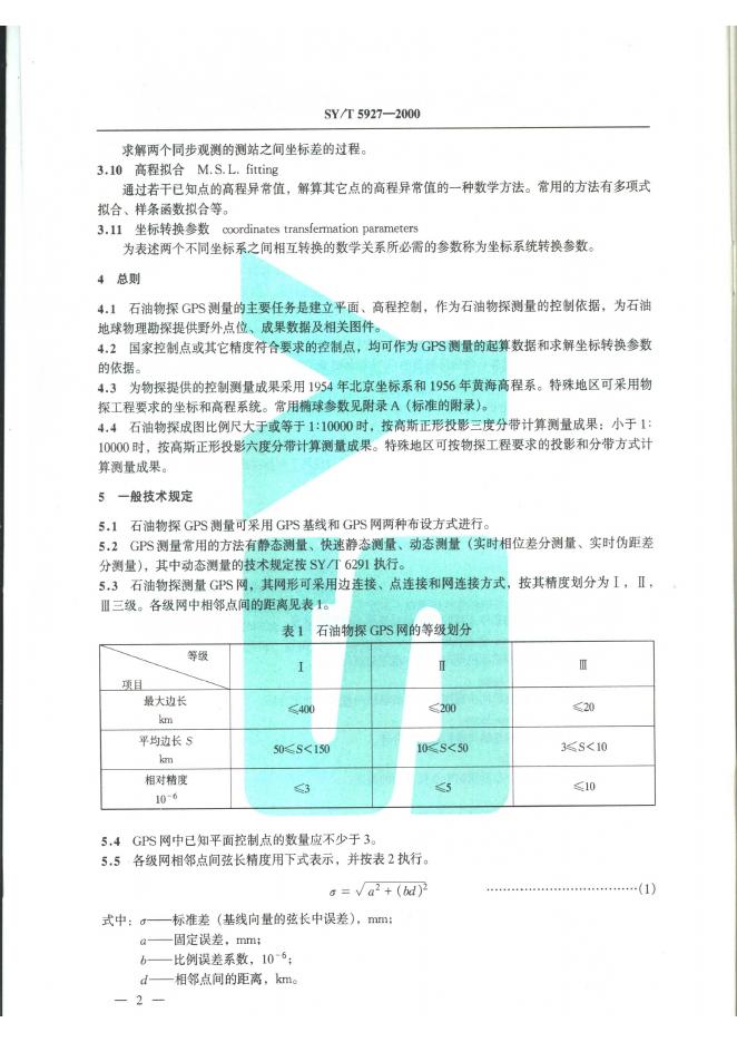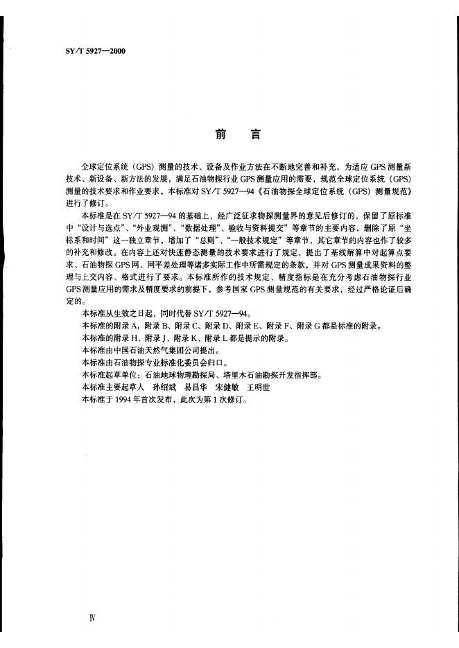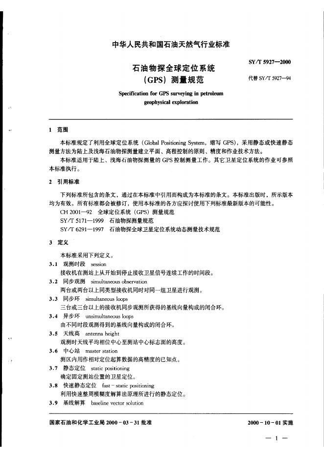SY/T 5927-1994 石油物探全球定位系统(GPS)测量规范
