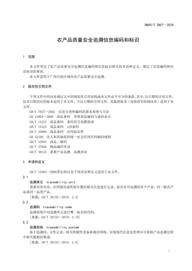 DB45/T 2857-2024 农产品质量安全追溯信息编码和标识
