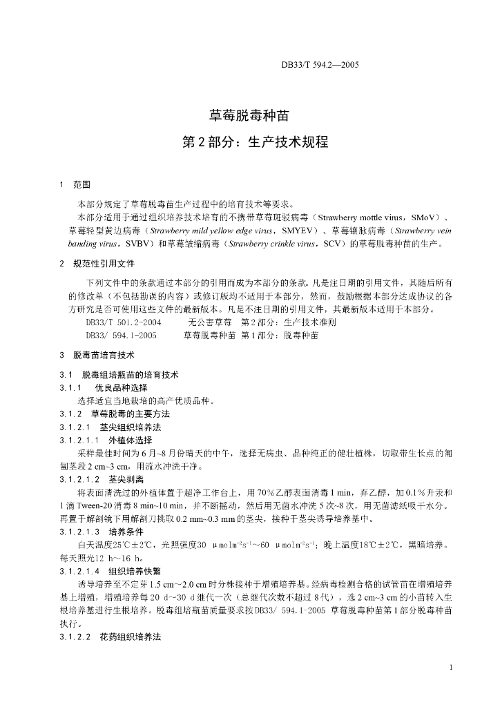 DB33/ 594.2-2005 草莓脱毒种苗 第2部分:生产技术规程