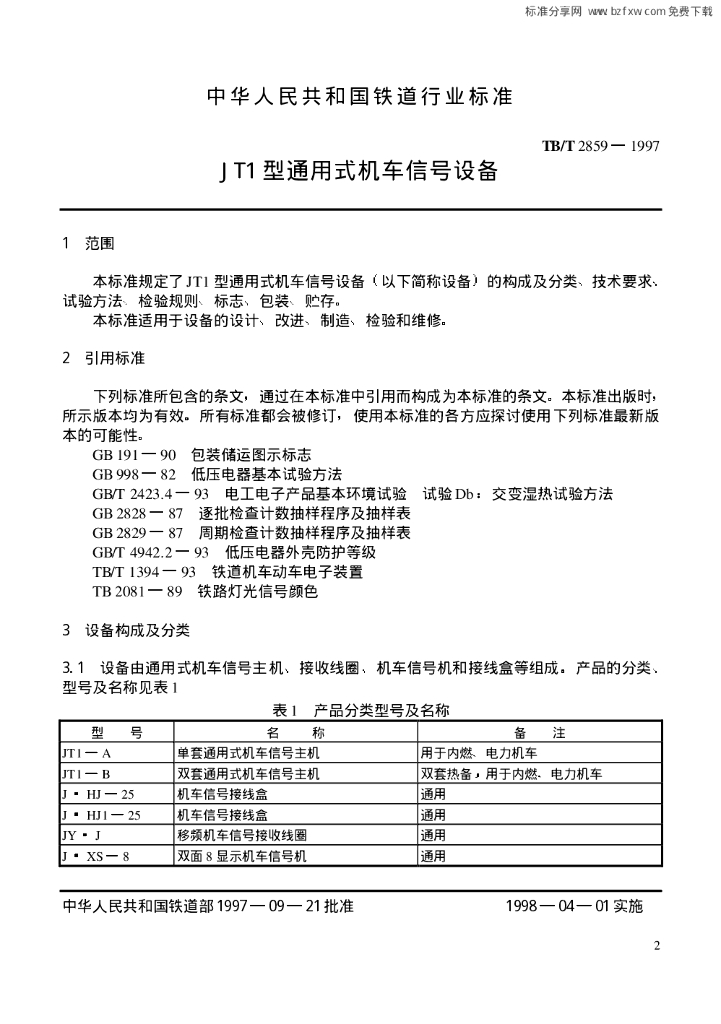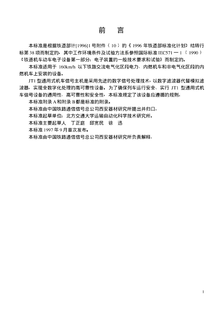 TB/T 2859-1997 JT1型通用式机车信号设备