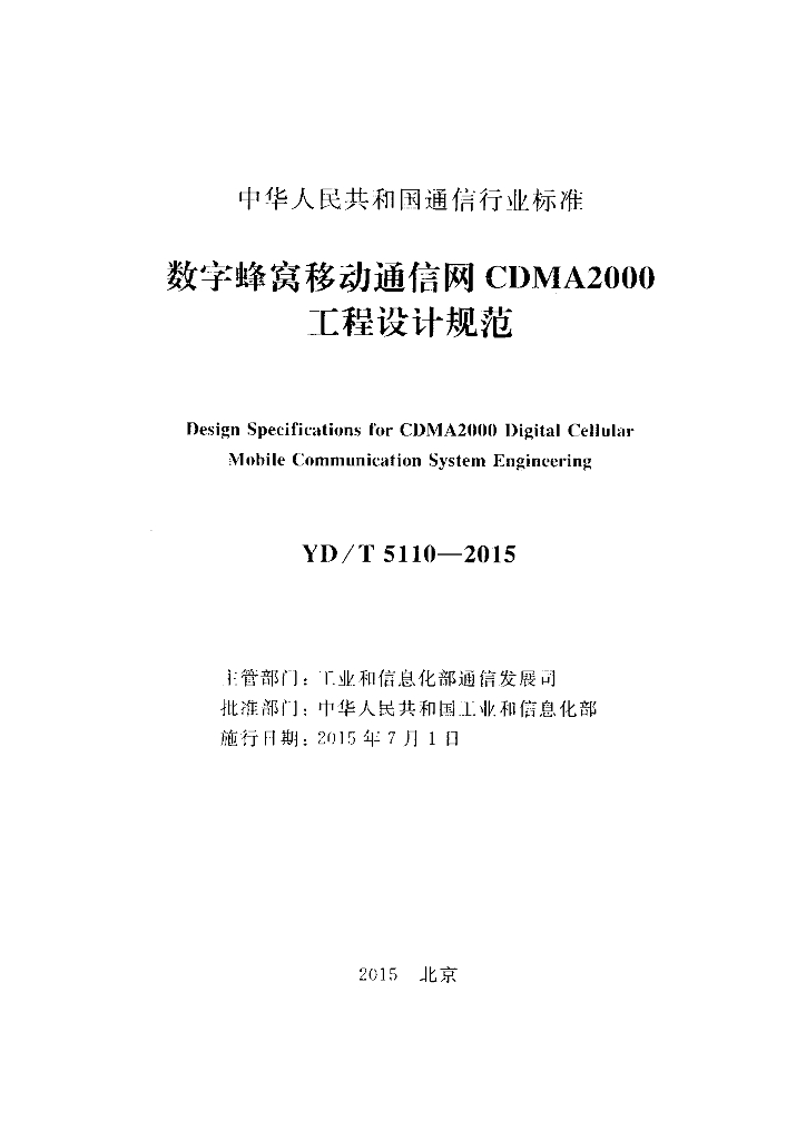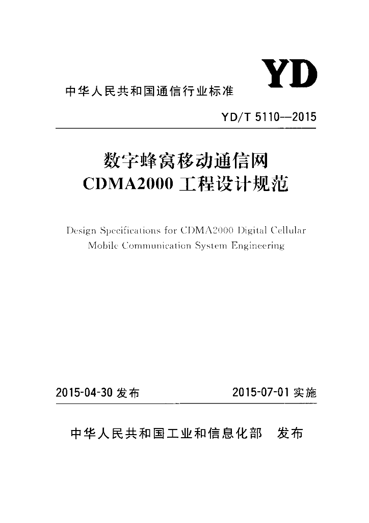 YD/T 5110-2015 数字蜂窝移动通信网CDMA2000工程设计规范(附条文说明)