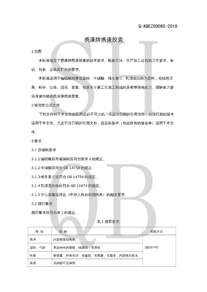 Q/ABEZ 0008S-2018 携康牌携康胶囊