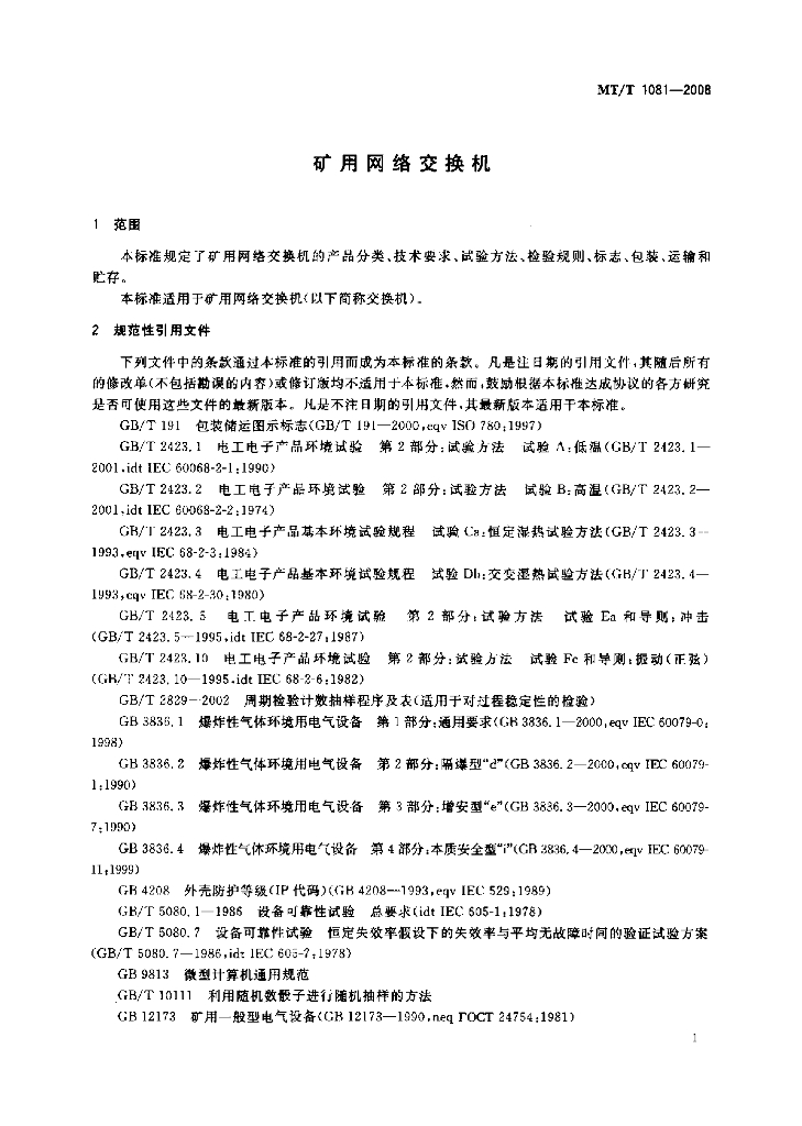 MT/T 1081-2008 矿用网络交换机